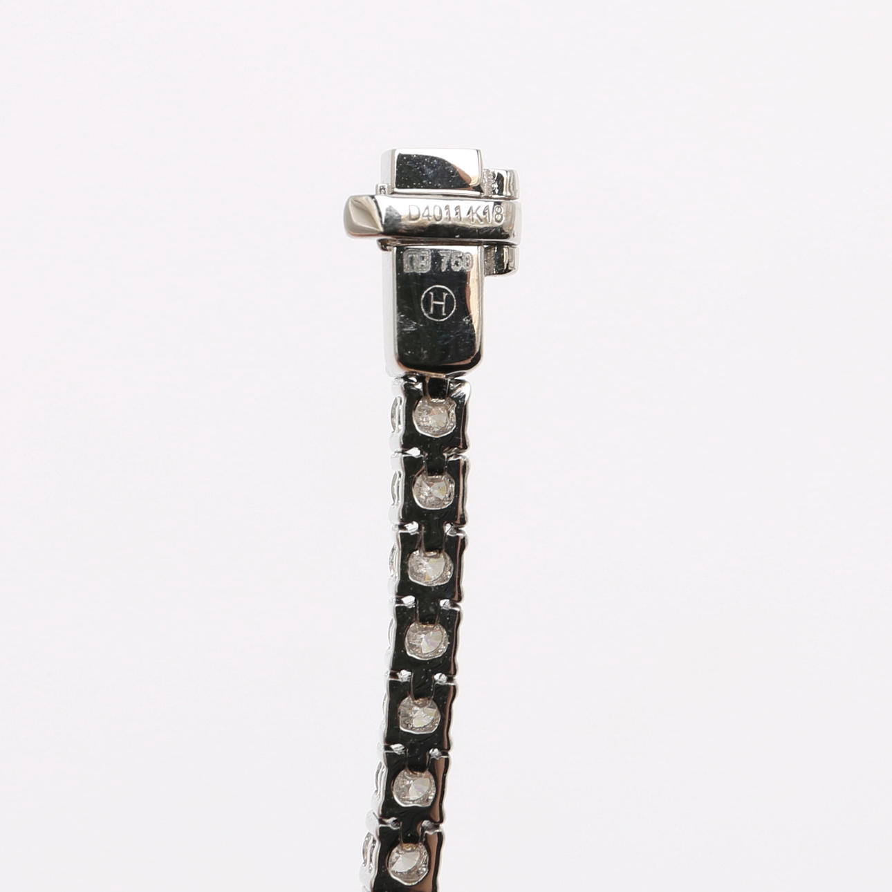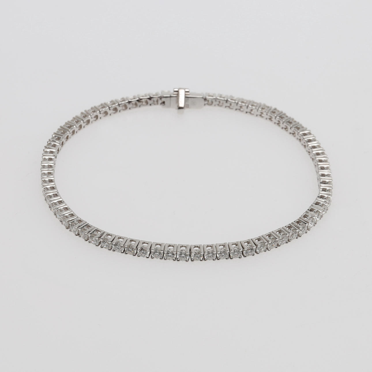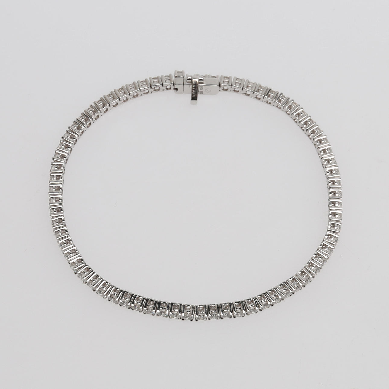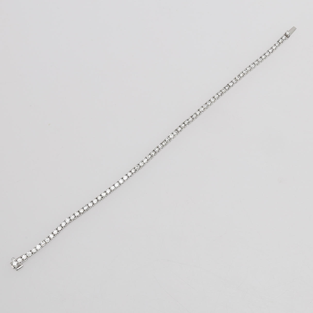 En rad med 70 briljantslipade diamanter om totalt ca 4,01 ct fattade i 18k vitt guld, längd 18 cm, vikt 10 gram.