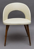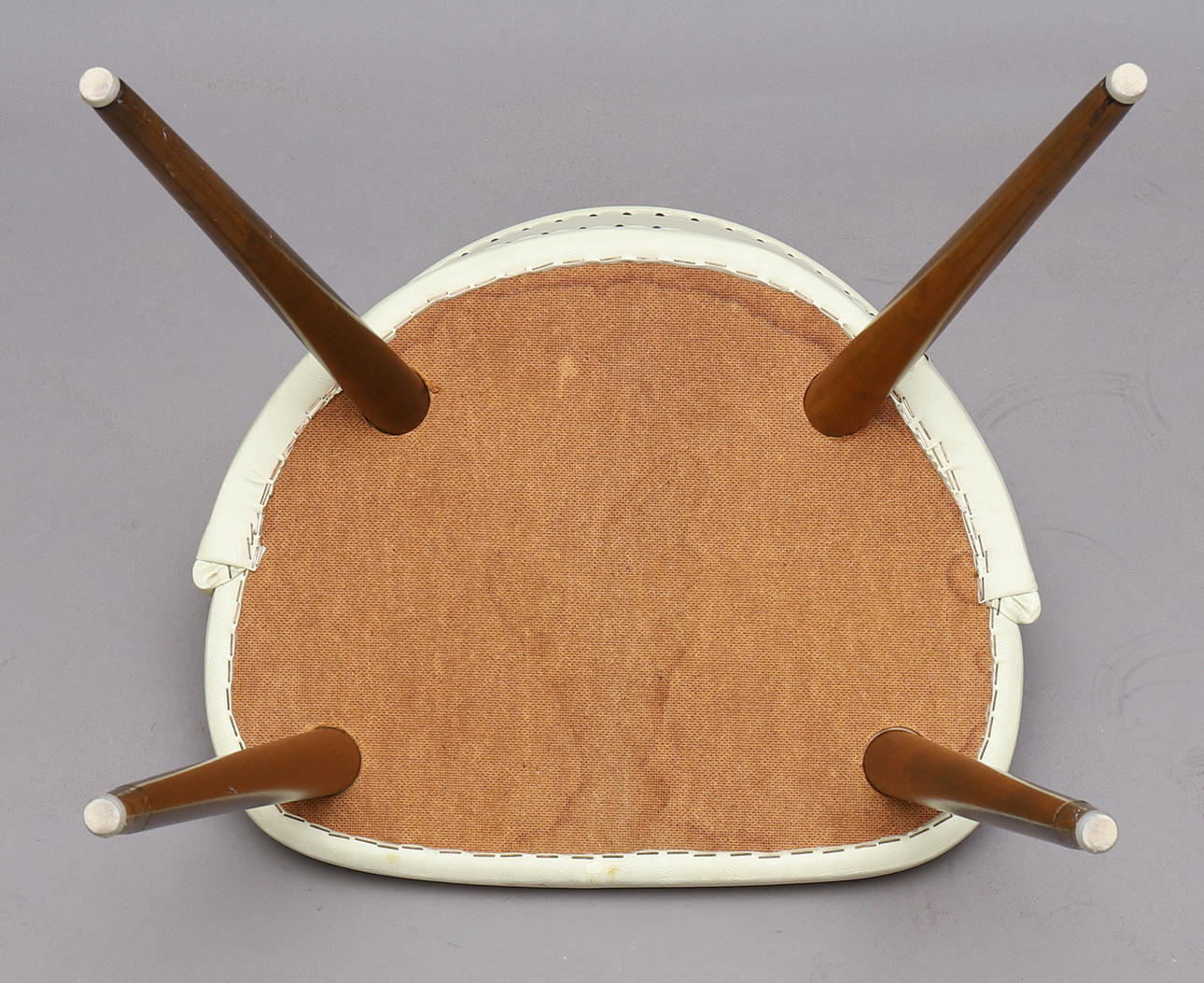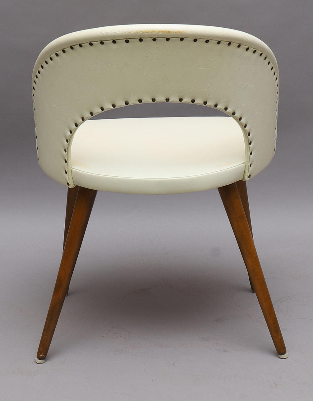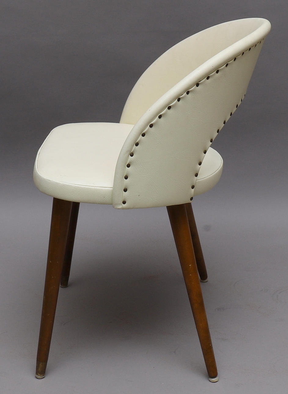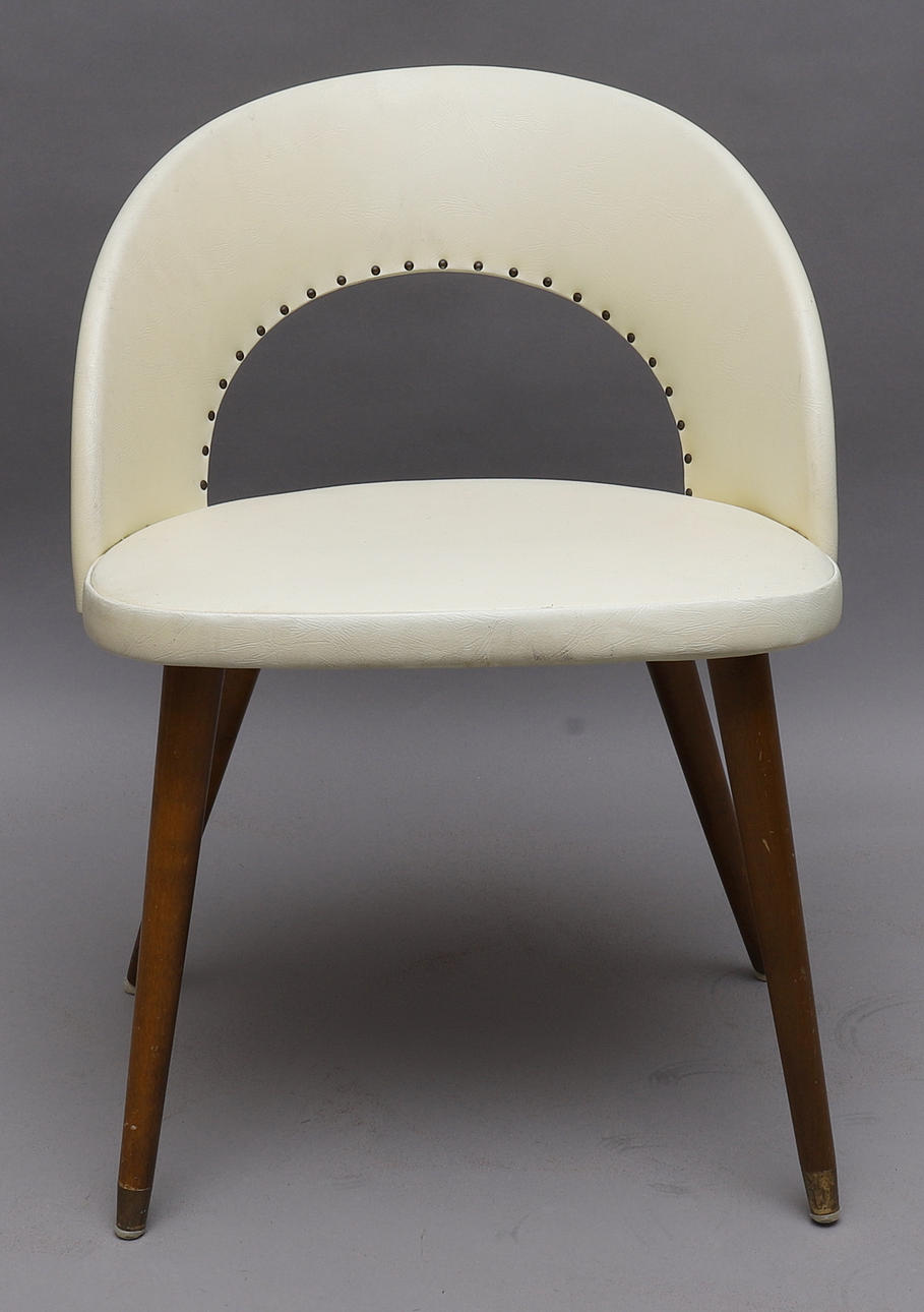 Stol, trä och galonklädd rygg och sits. Nitdetaljer. Rygghöjd ca 65 cm, bredd ca 37 cm, sitthöjd ca 41 cm, sittdjup ca 37 cm.