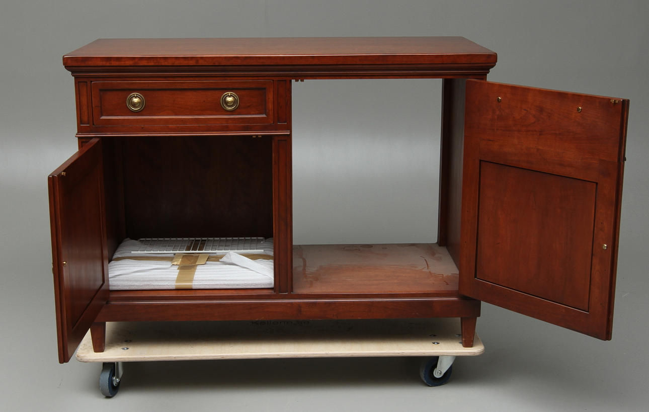 Enligt uppgift inköpt på George Henscher, märkt Kenndy Ipswich England, längd 117, bredd 55, höjd 86 cm.