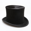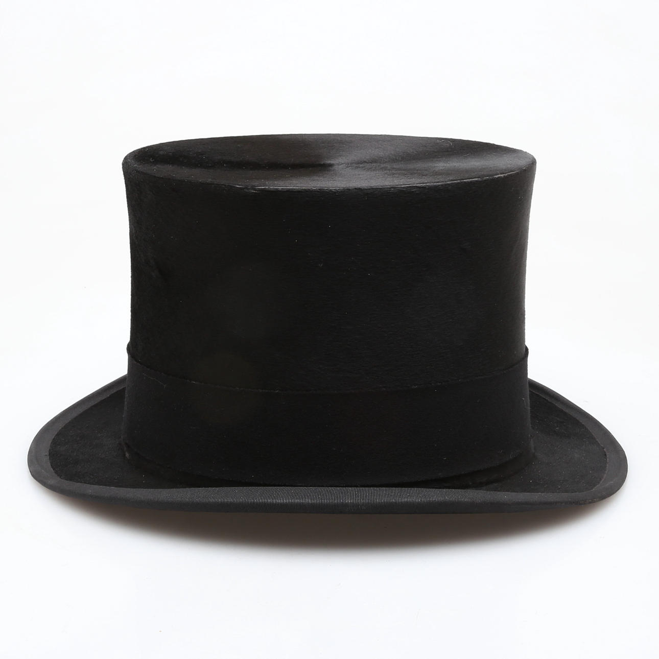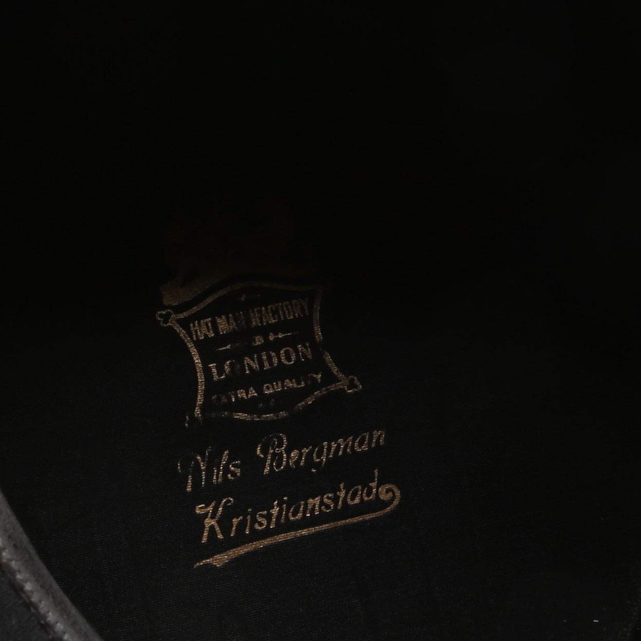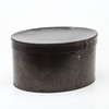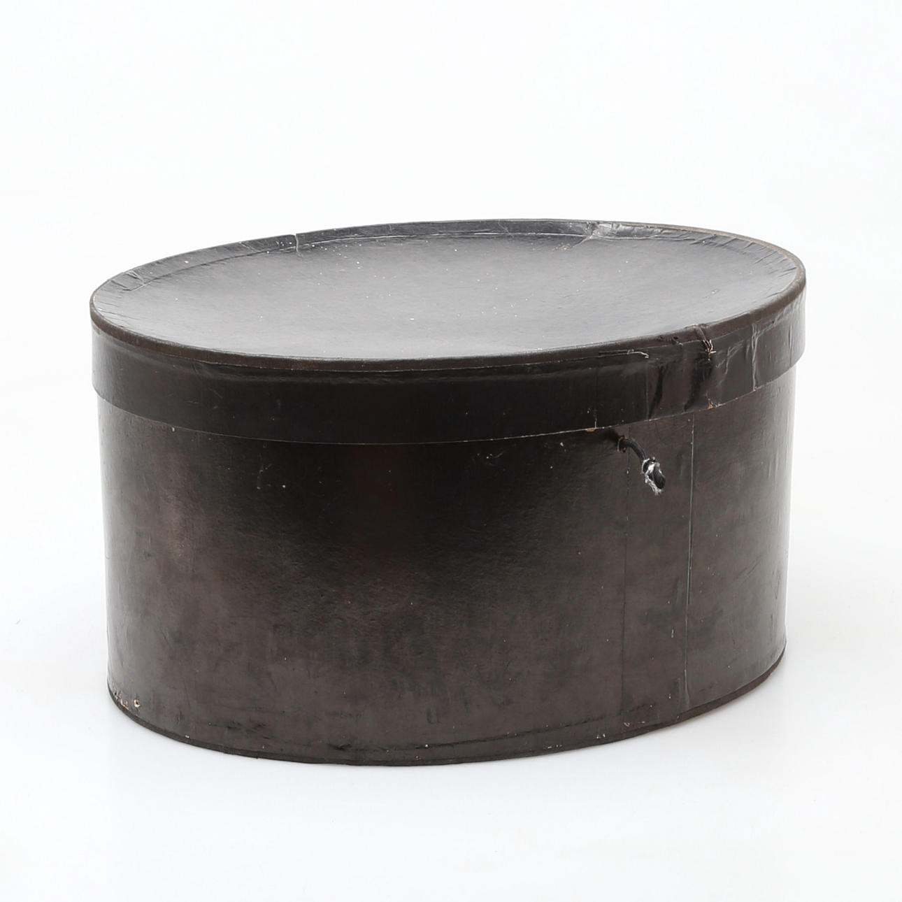 Hög hatt i pappask, 1900-talets första hälft. invändigt stämplad "Nils Bergman, Kristianstad".