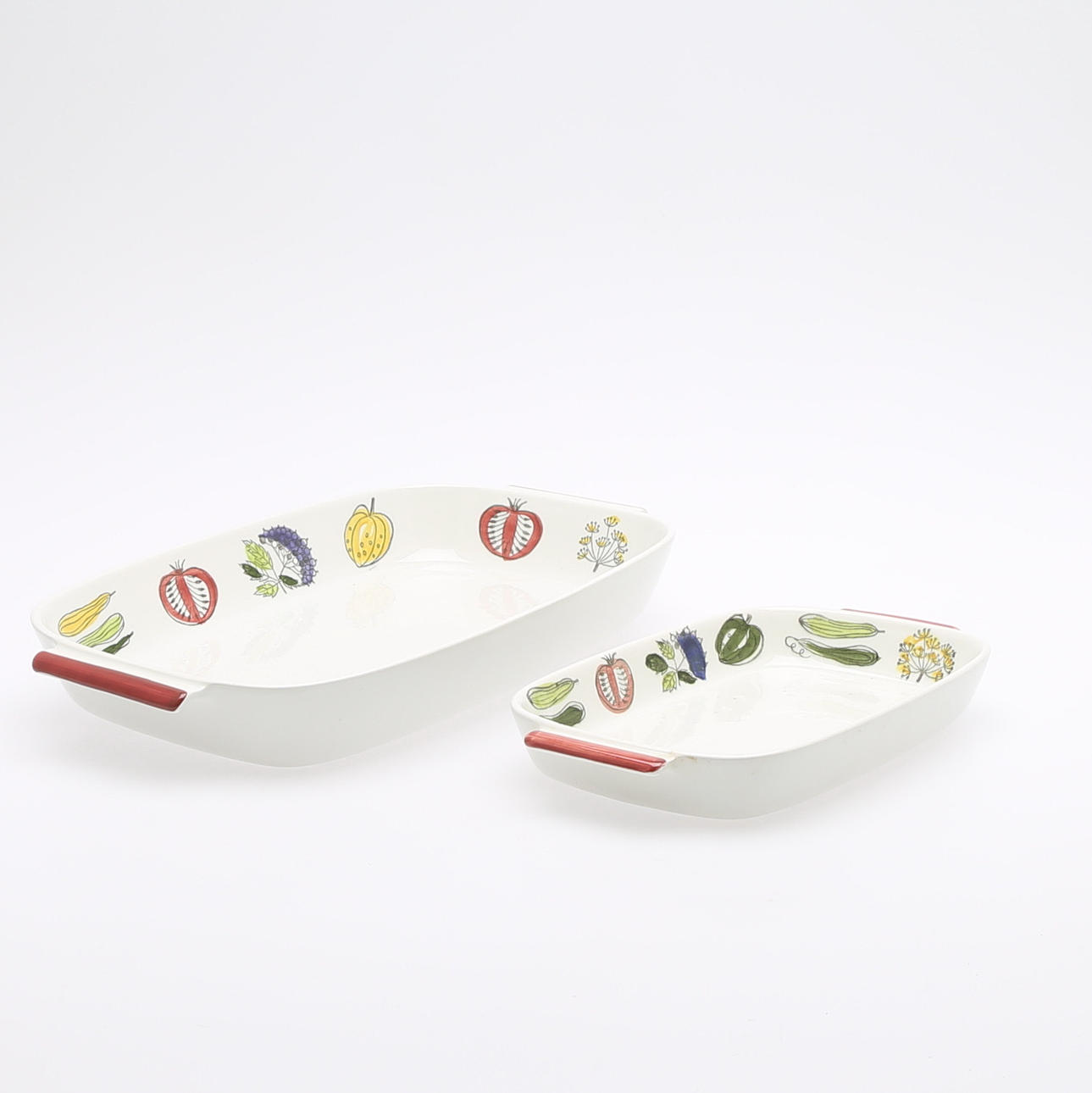 Runda formar, 2 st, diameter 16,5-18,5 cm. Uppläggninsfat, 3 st, längd 25-37,5 cm.