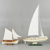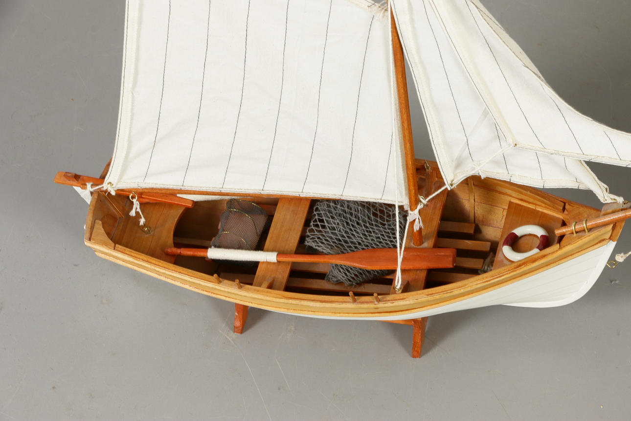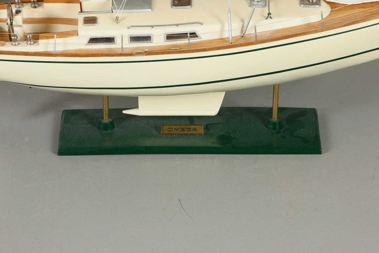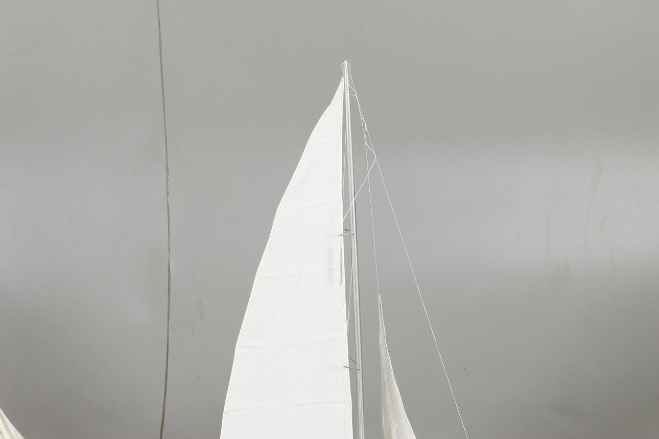 Fiskebåt på sockel Längd 56, höjd 52 cm Segelbåt Omega, på fast sockel Längd 71, höjd 112 cm.