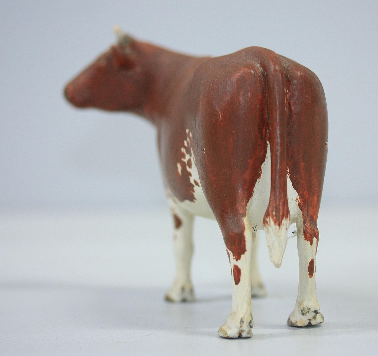 bruksslitage, lagade öron, samt avslaget horn.