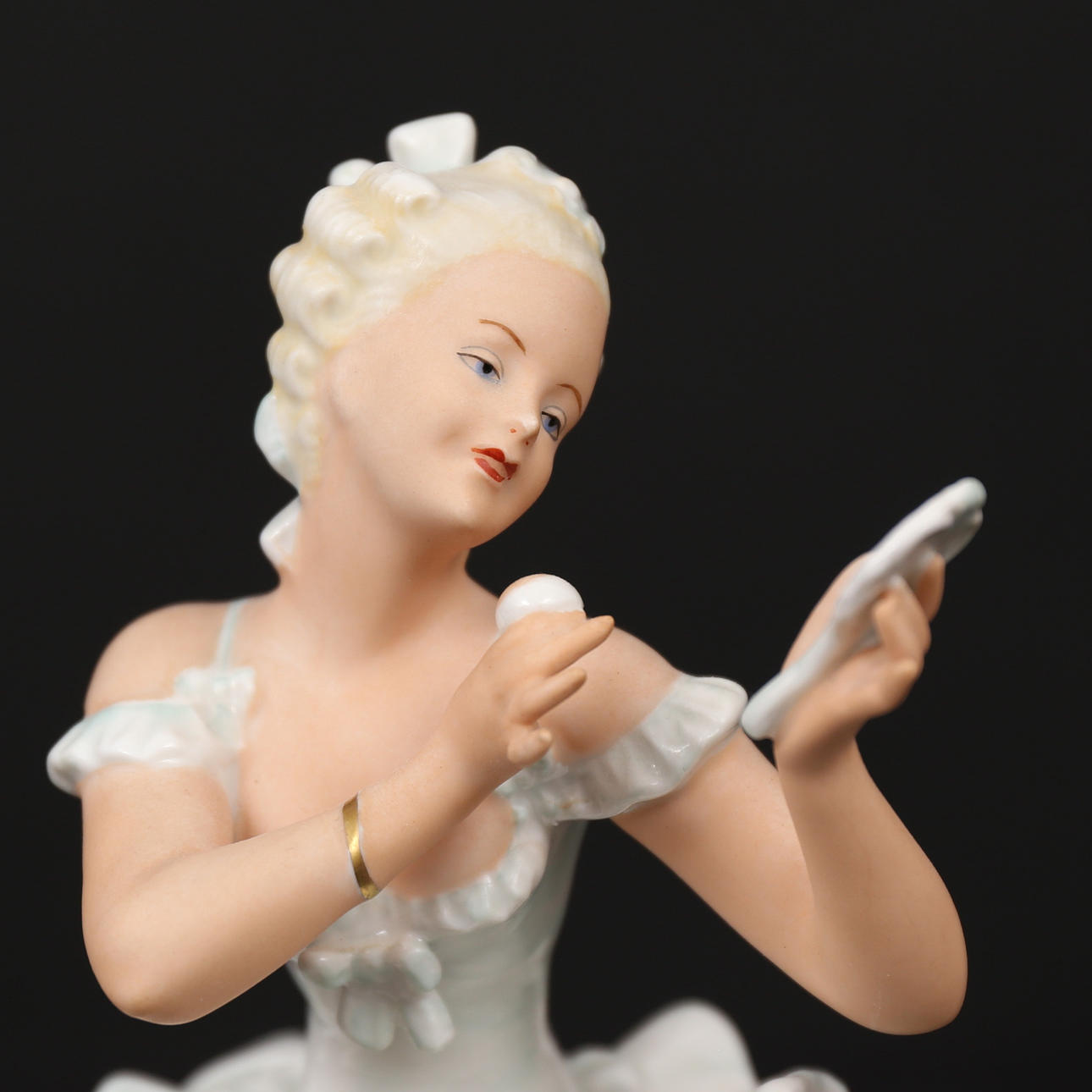 Porslin, rokokodam, omkring 1900-talets mitt, höjd ca 18 cm.