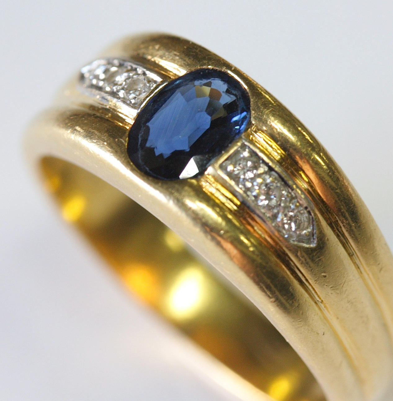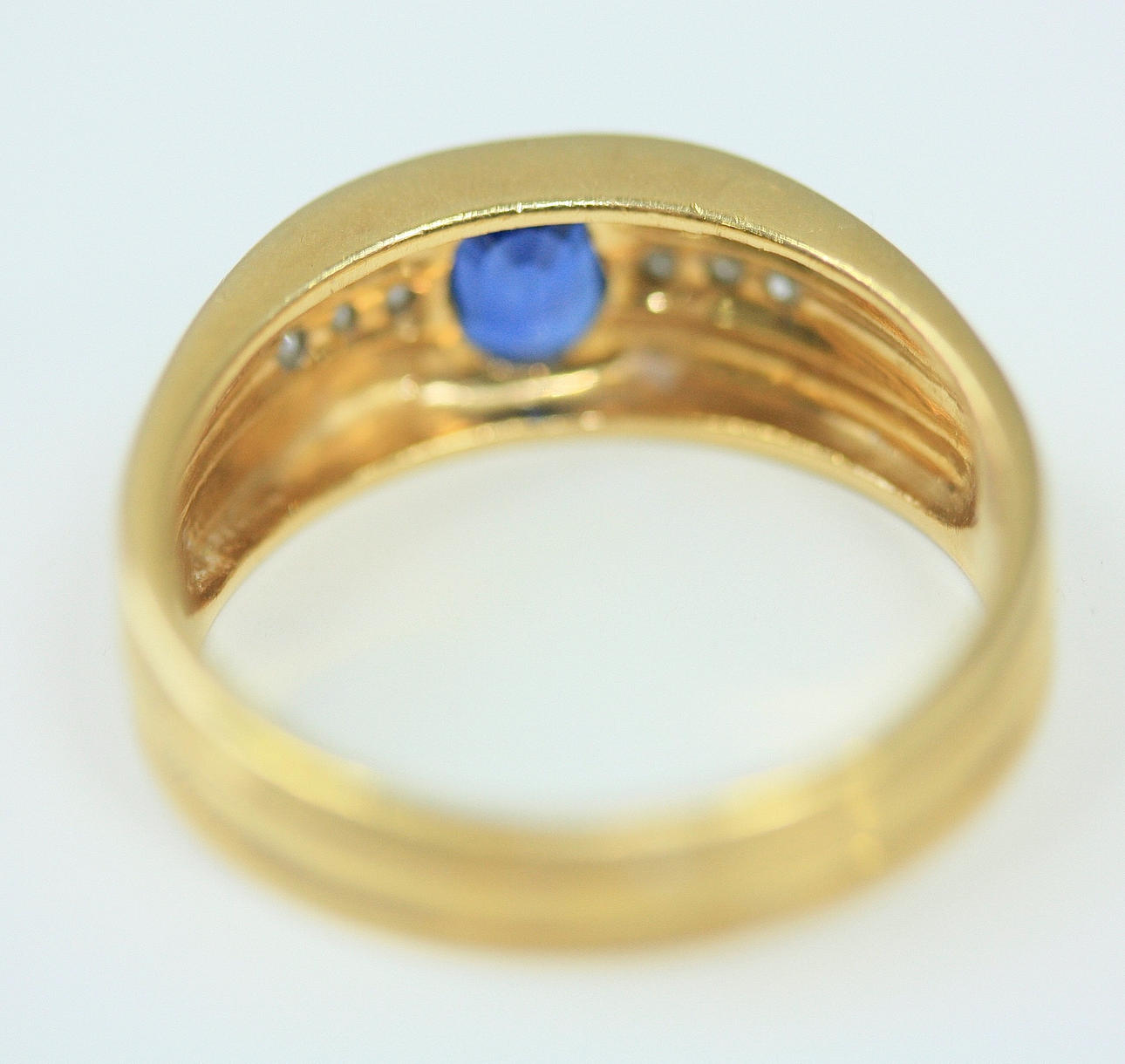 Safir, 0,72 ct Diamanter, 0,09 ct Total vikt 7,2 gram Innerdiametern 19,5 mm.