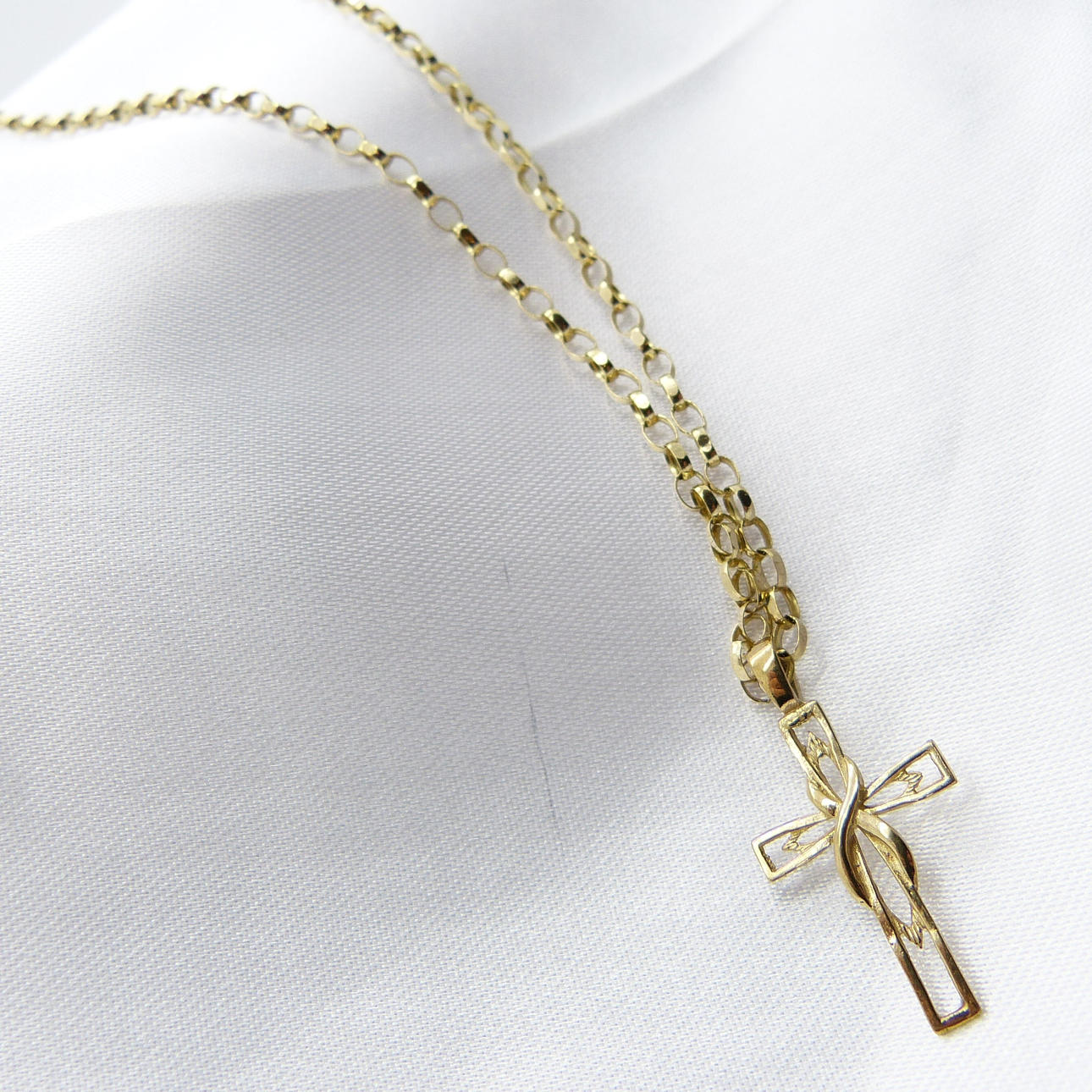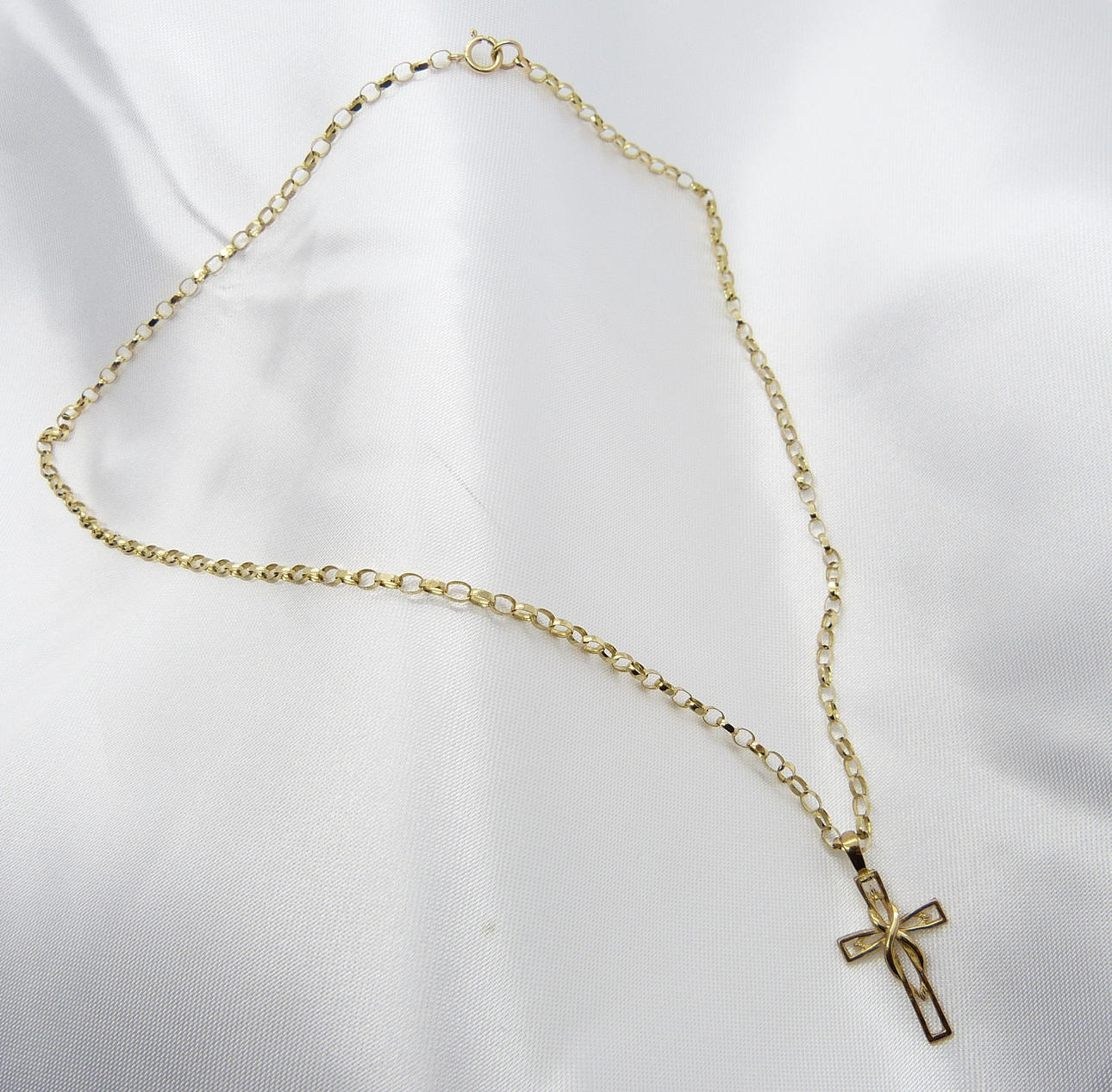 Halsband 9k gult guld bestående av ett kors hänge och en belcher kedja.
