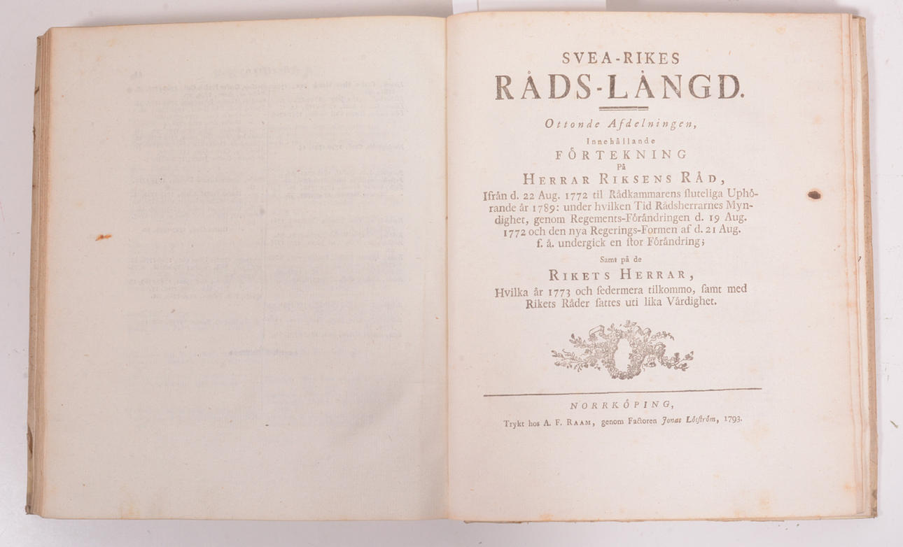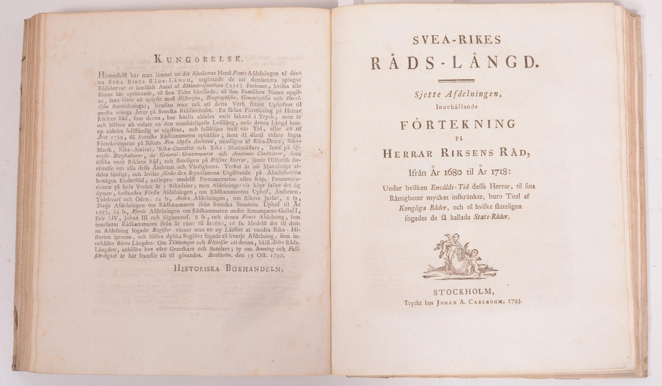 Hillebransson Uggla, Carl. Stockholm, Tryckt hos Johan A. Carlbom & Norrköping A. F. Raam. 1791-1793. 14, 2, 80, 2 +24 + 80, 11, + 24, 4 + 47, 5 + 20, 3 + 43 + 14, 14 sidor. Äldre pappband. namnteckning P Wieselgren.
