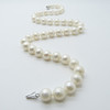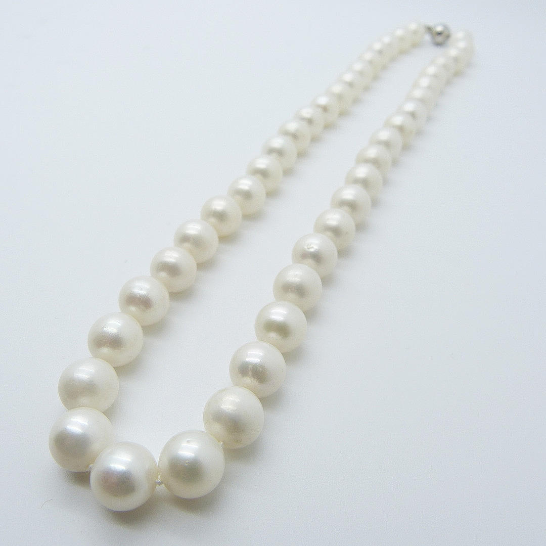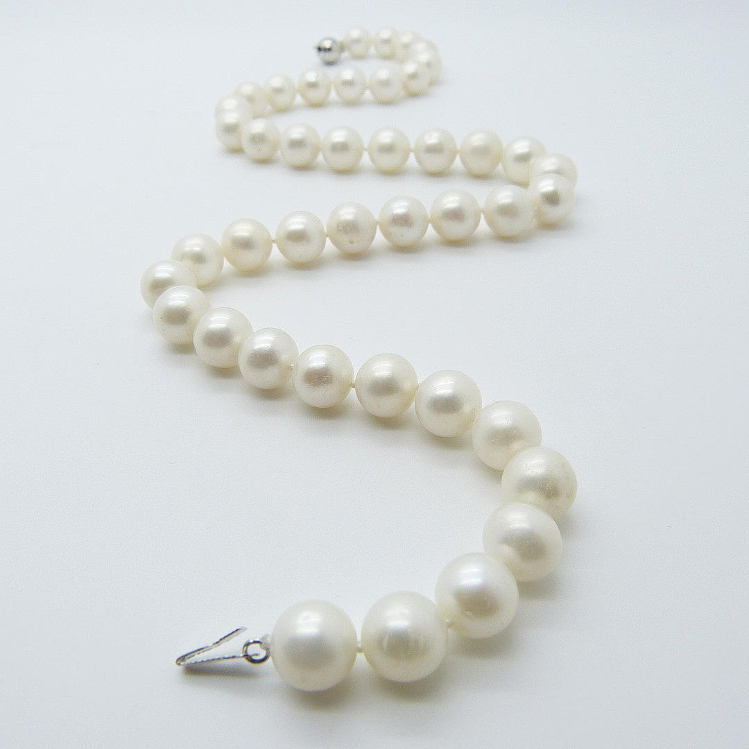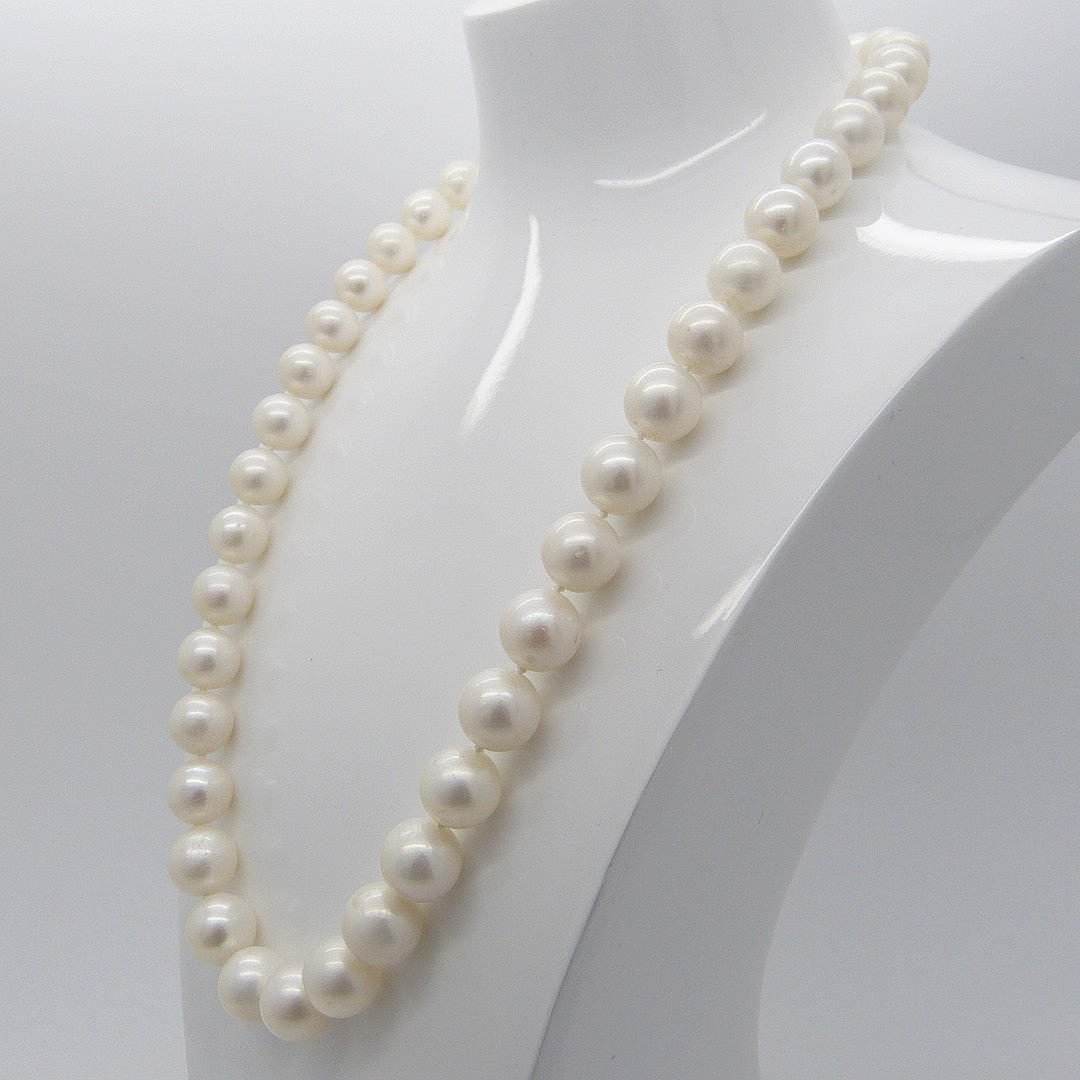 Detta halsband är uppträdda med totalt 42 runda, vita odlade pärlor.
