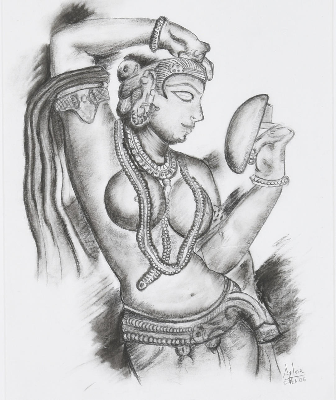 Balinesisk kvinna, oidentifierad signatur daterad 5/2 06, 36x27 cm.