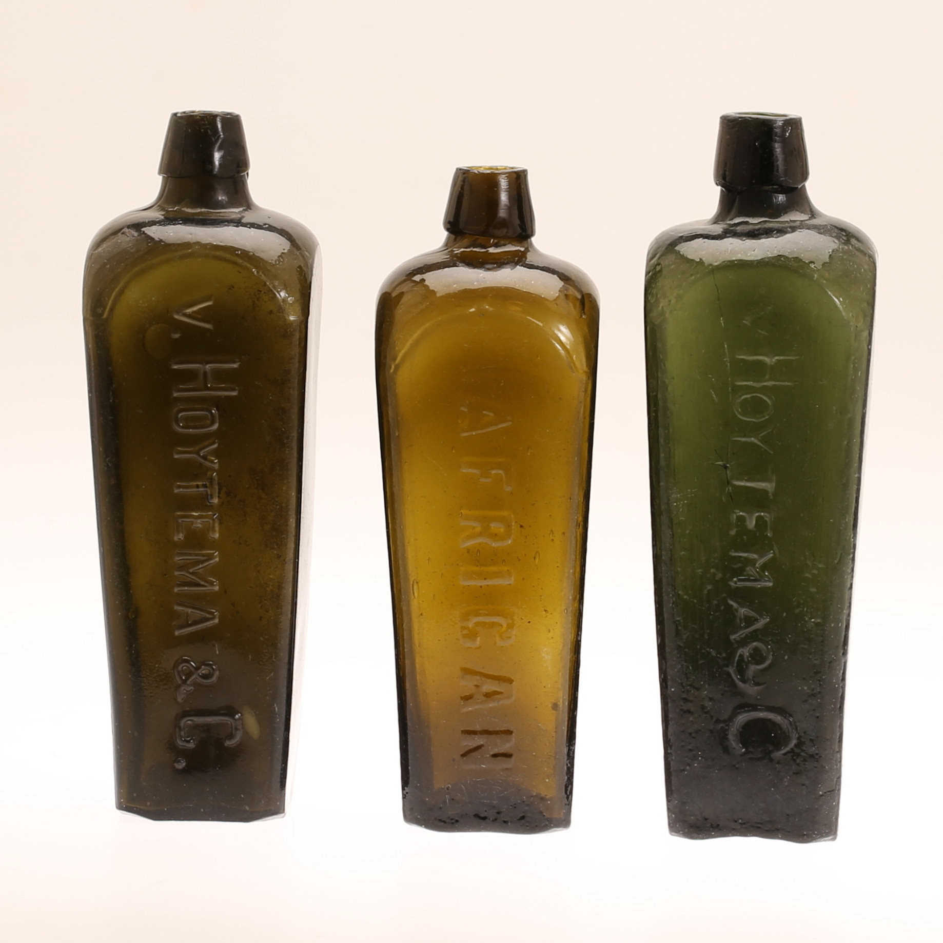 1349665. FLASKOR, 3 stycken, glas, bl a V Hoytema & C.