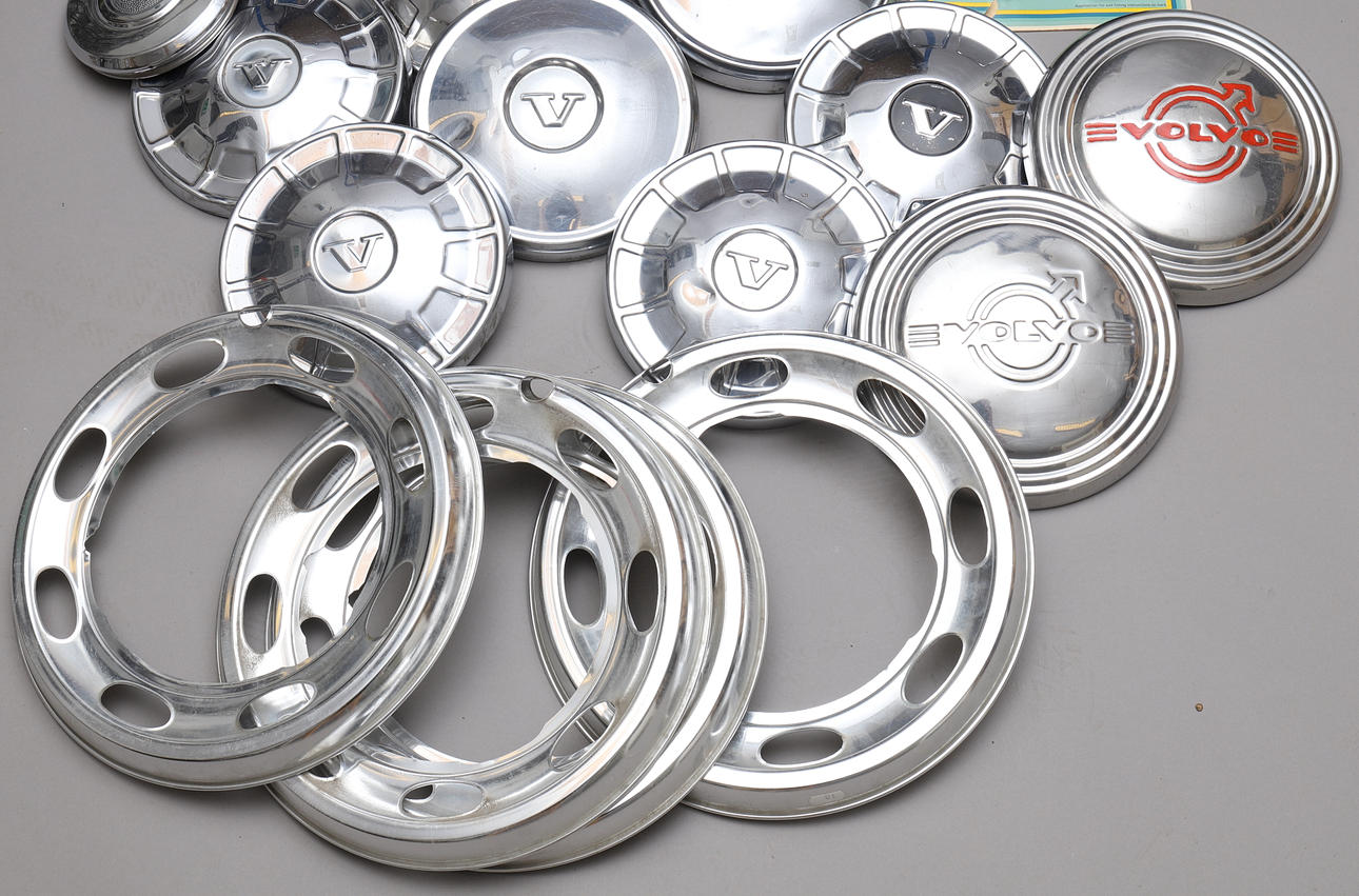 En navkapsel, Volvo, ca 16 cm i diameter.