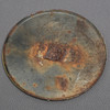 Nagg i kanterna. Baksidan med rostig fastsättningsanordning.