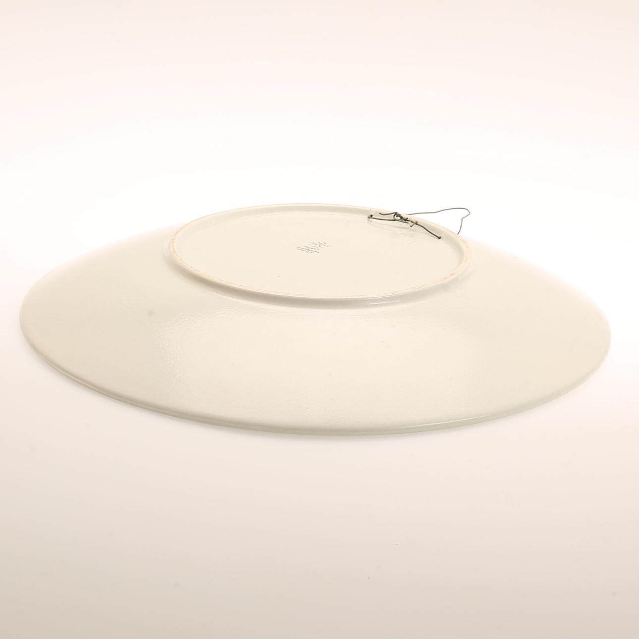 Diameter cirka 36 cm. Går att hänga på vägg.
