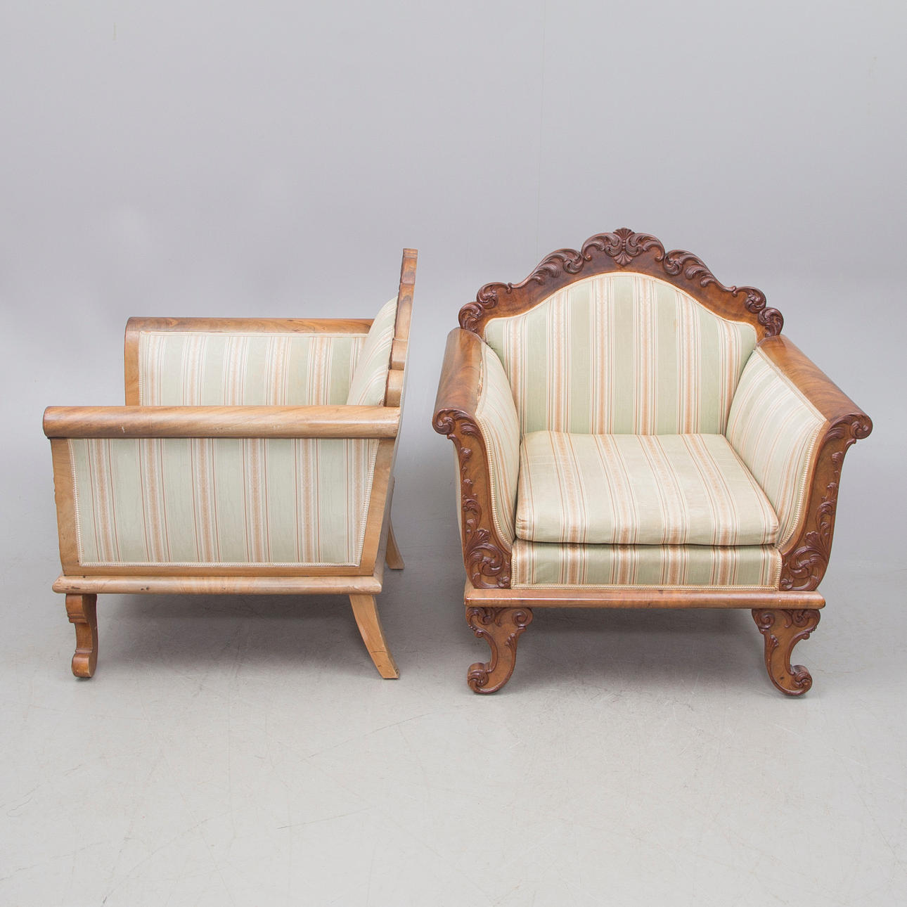 FÅTÖLJER 1 par, trä/textil, 1900-tal.