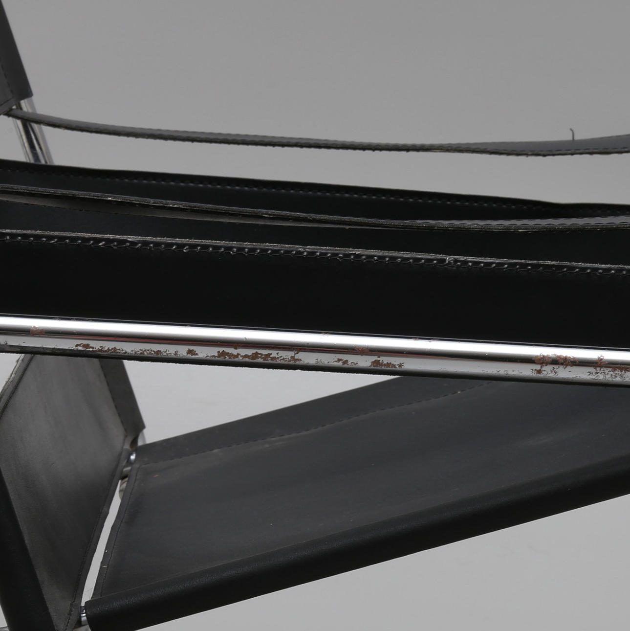 Kromad metall med klädsel i svart läder.