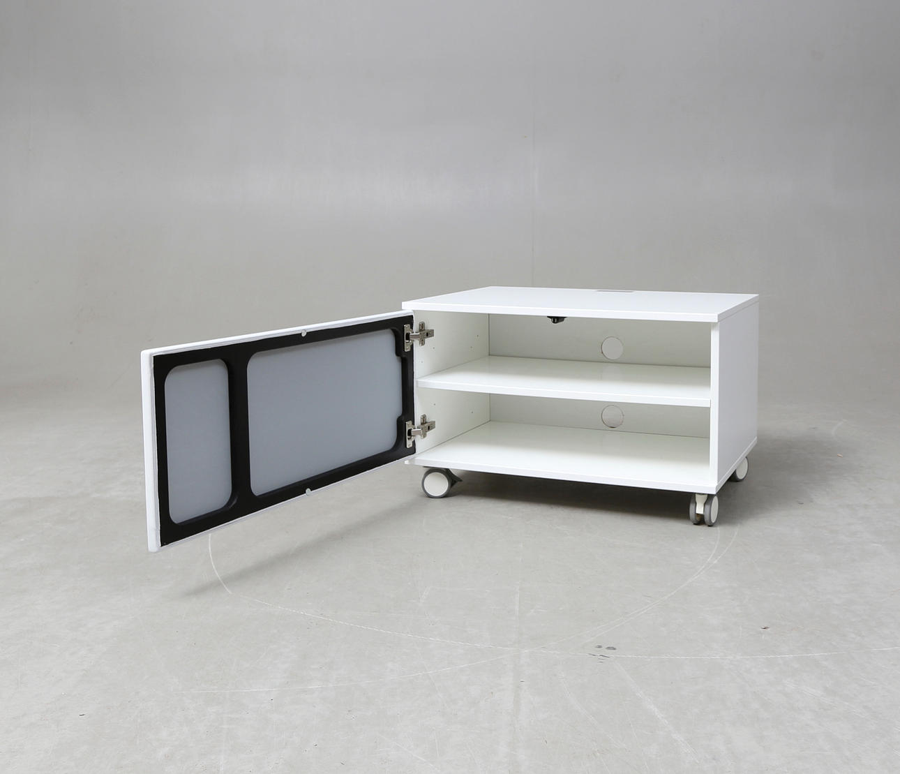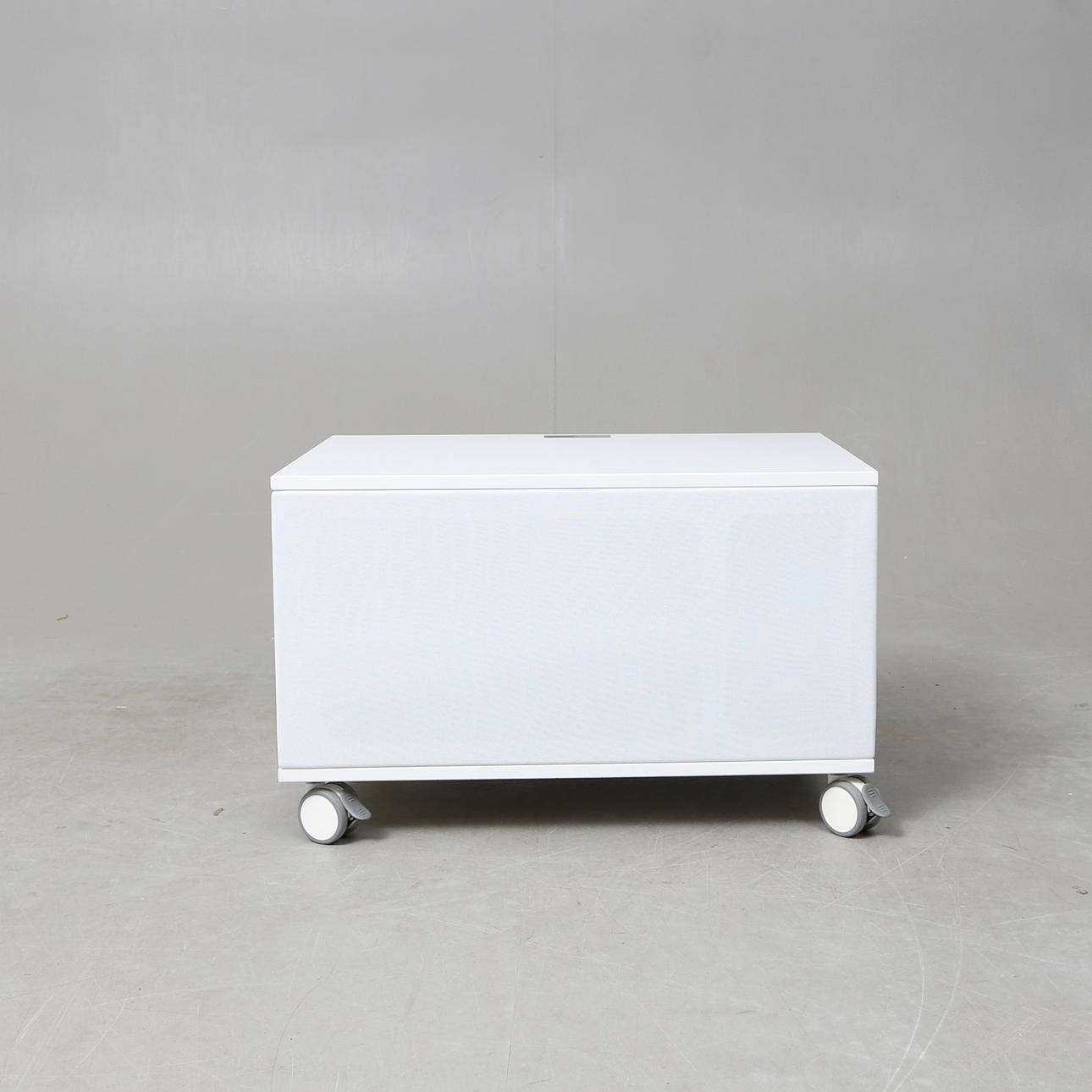 På hjul, längd ca. 69, bredd 45, höjd 43 cm.