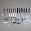 7 Matknivar 18,5cm 1 Kompottsked 14,5cm 6 Matgafflar 17,5cm 4 Smörknivar 16cm 1 Förrättskniv 16cm 9 Förrättsgafflar 14,5cm.