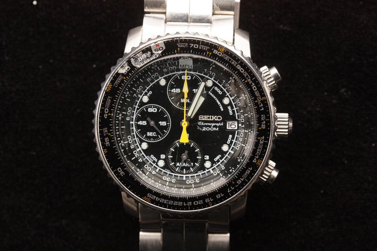 42,2 mm Alarm Quartz Stop Datumfönster Länkar medföljer Originalbox Instruktionsbok Caliber 7T62.