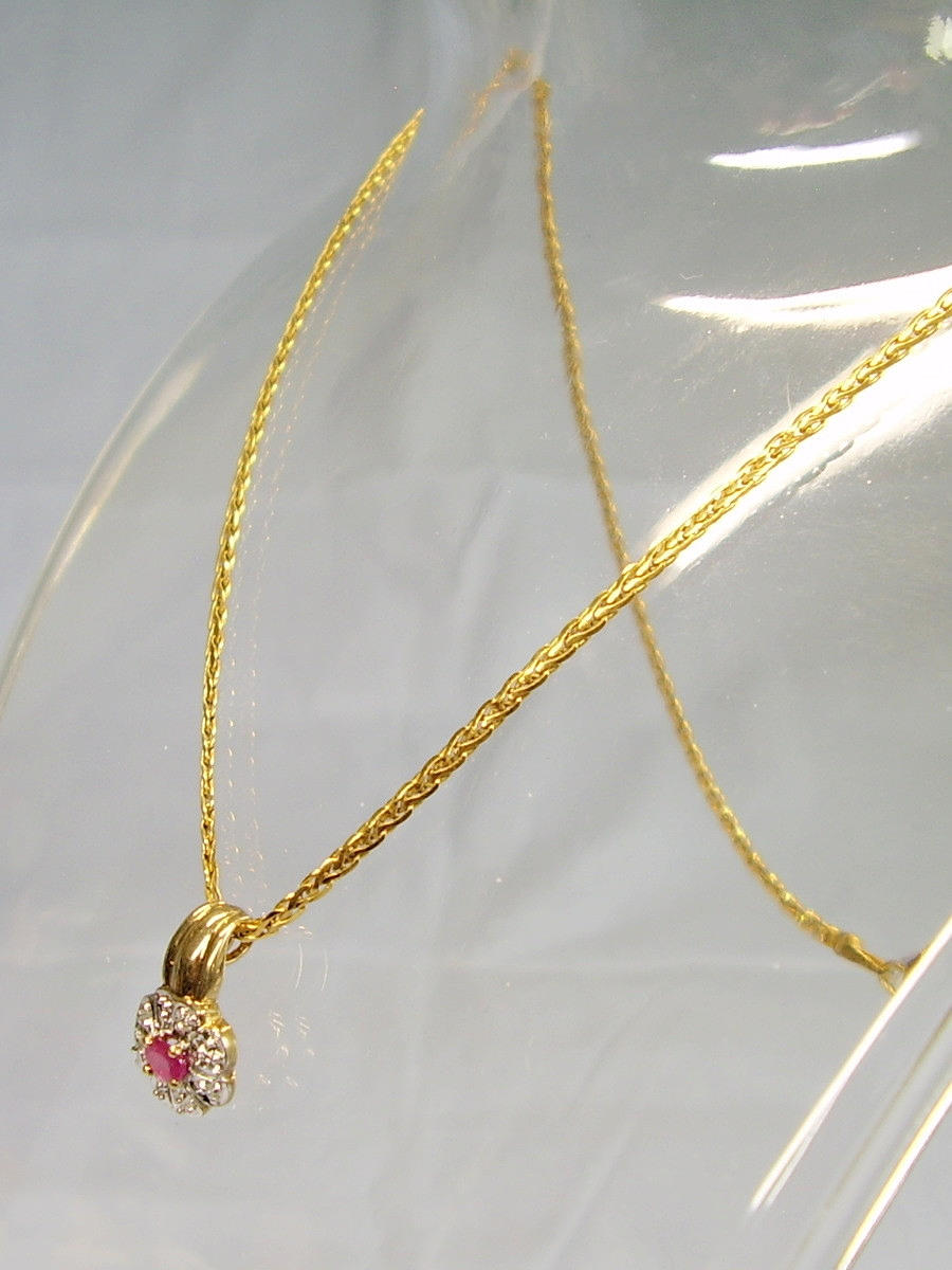1362303. RUBY HÄNGE GULT GULD/VITT GULD PÅ KEDJA.