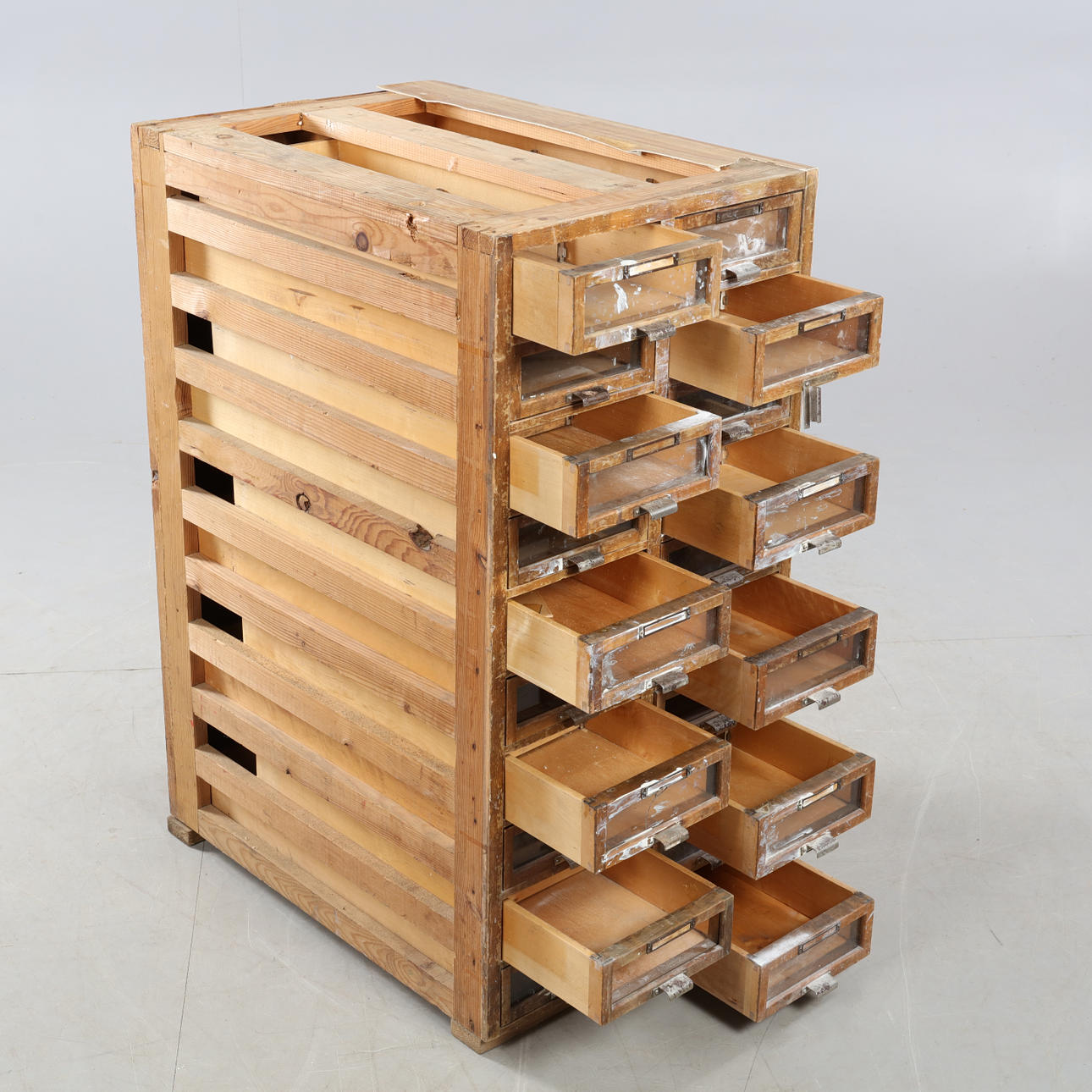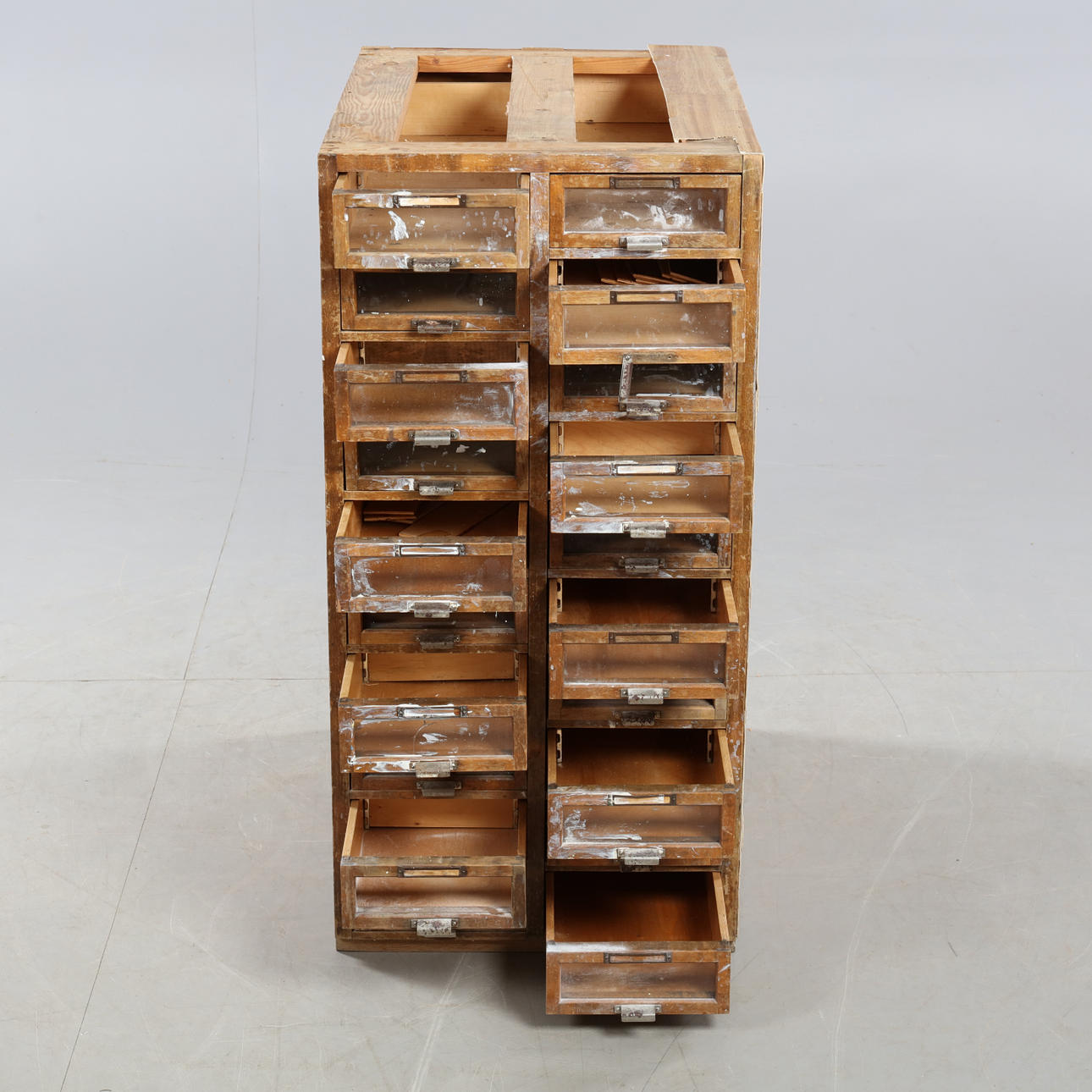 Slitage repor & märken, glas saknas på 2 st lådor.