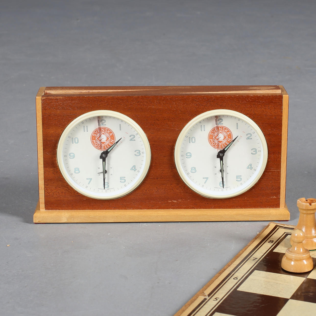 Schackklocka, i trä "svenska modellen", Western Germany.