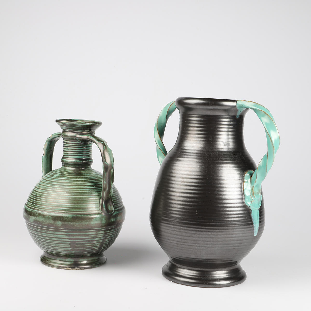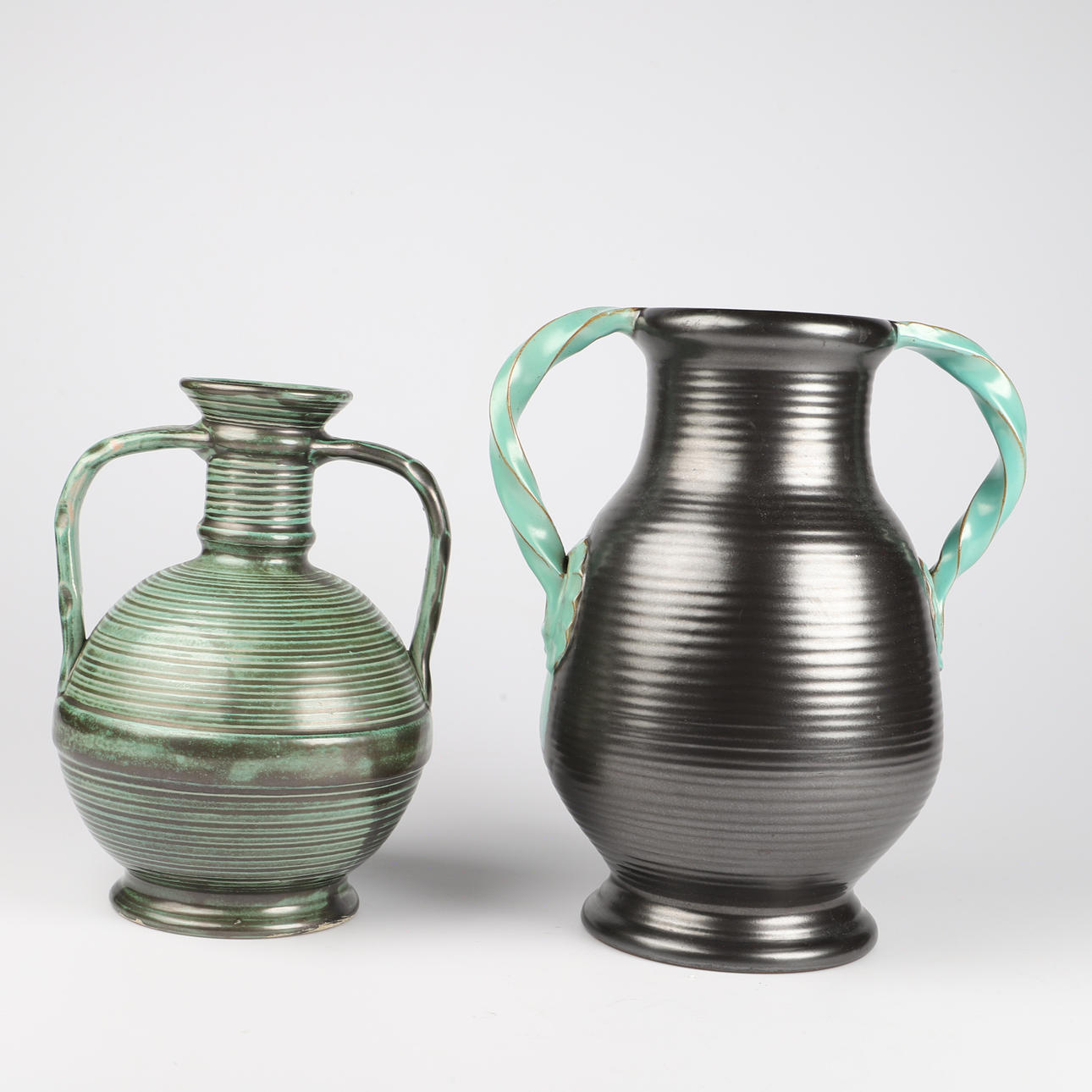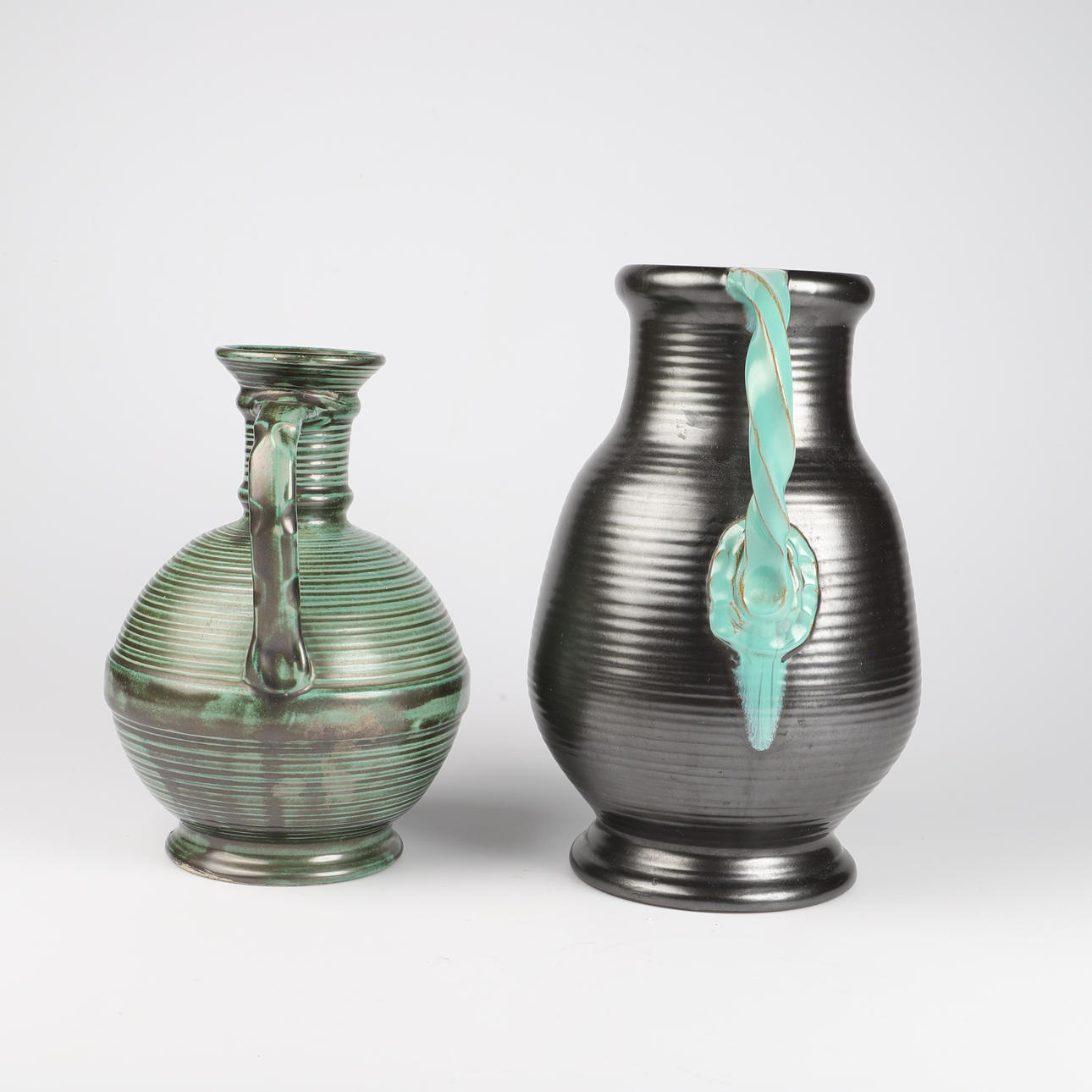 VASER MED HÄNKLAR, 2 stycken, keramik, Ekeby.