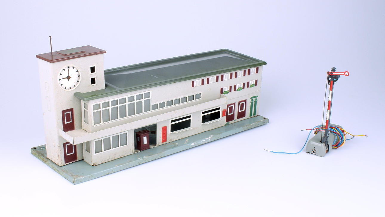 Plåt, med elsignal. Längd 34 cm, höjd 16 cm.