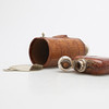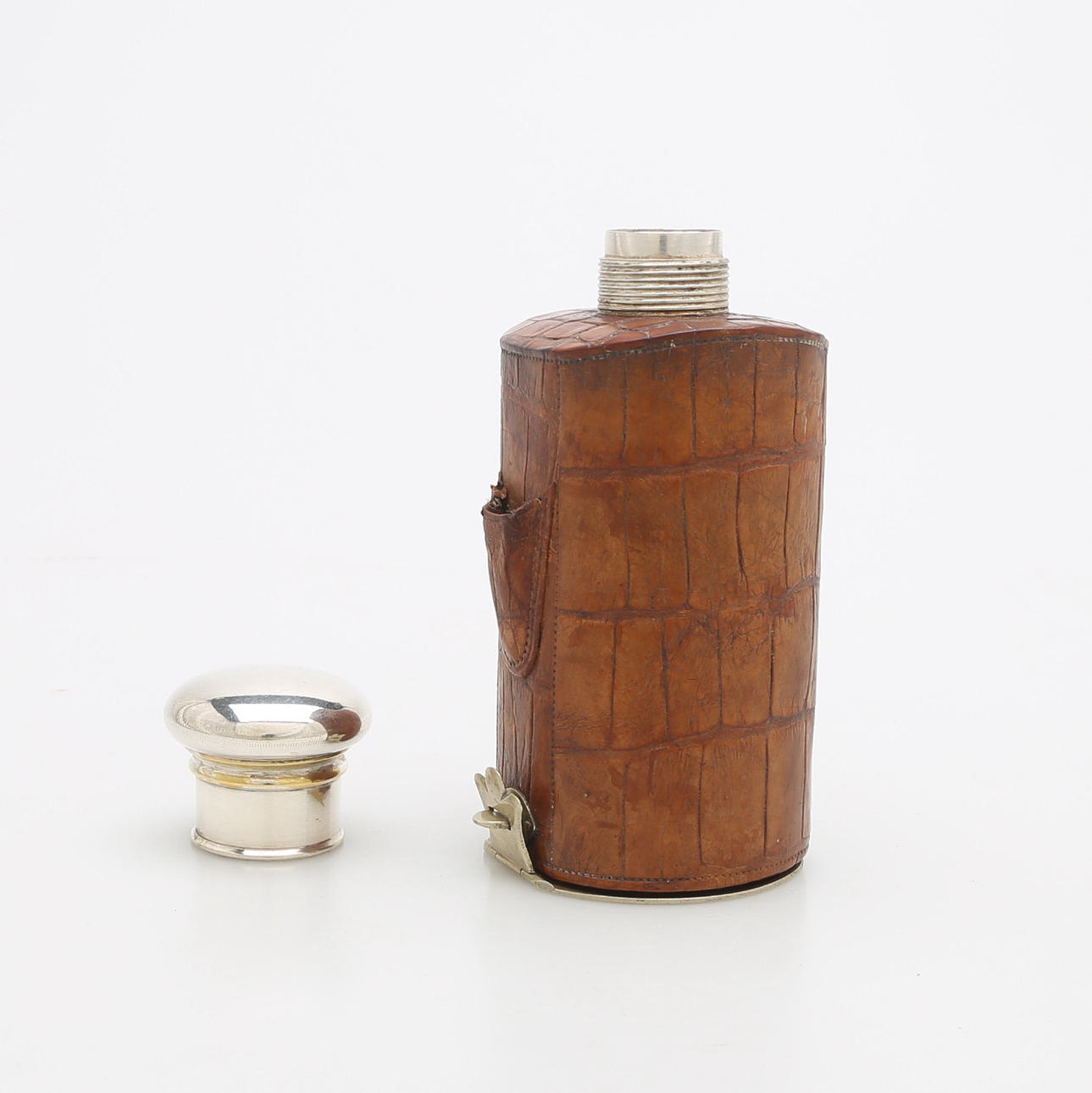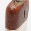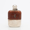 Glas, läder och pläter, höjd 11,5 och 13,5 c.