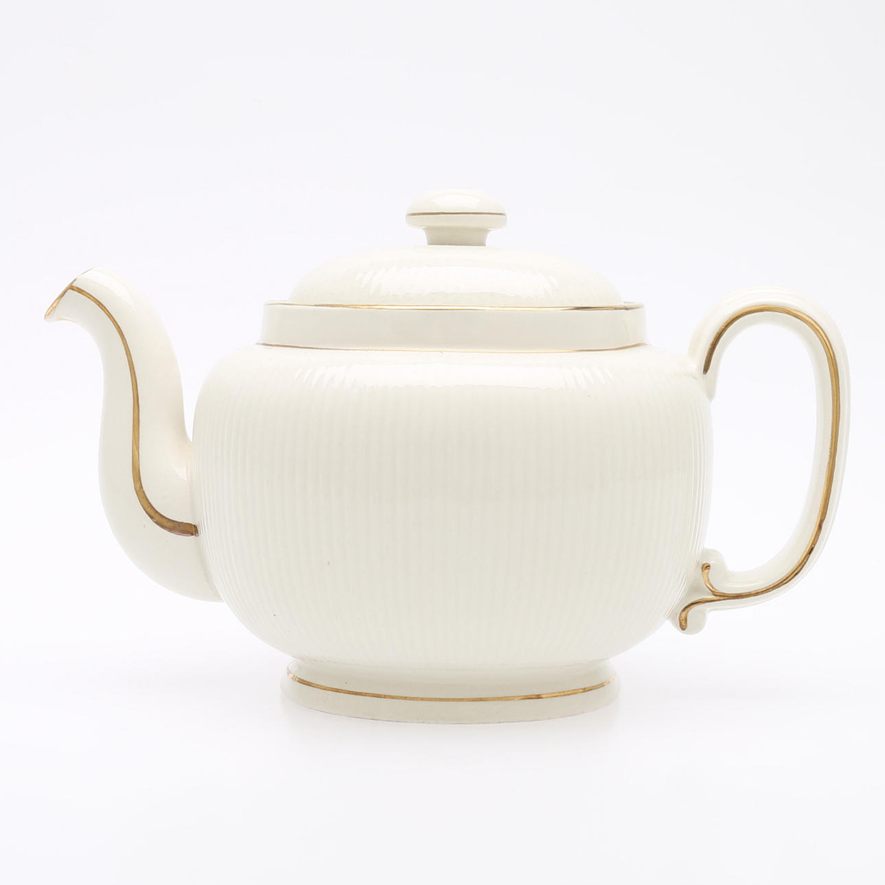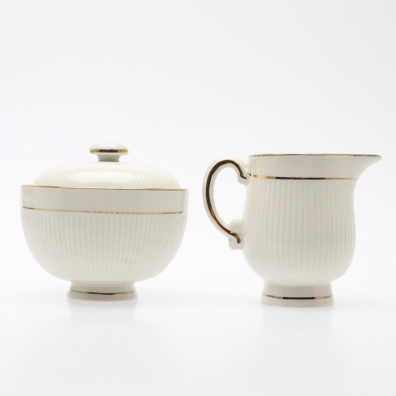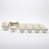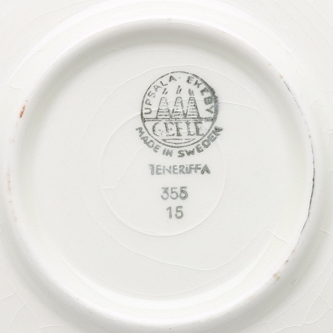1940/50-tal, tekanna, höjd 14 cm, tekoppar med fat, 12 st, sockerskål, diameter 10 cm, mjölkanna, höjd 9 cm.