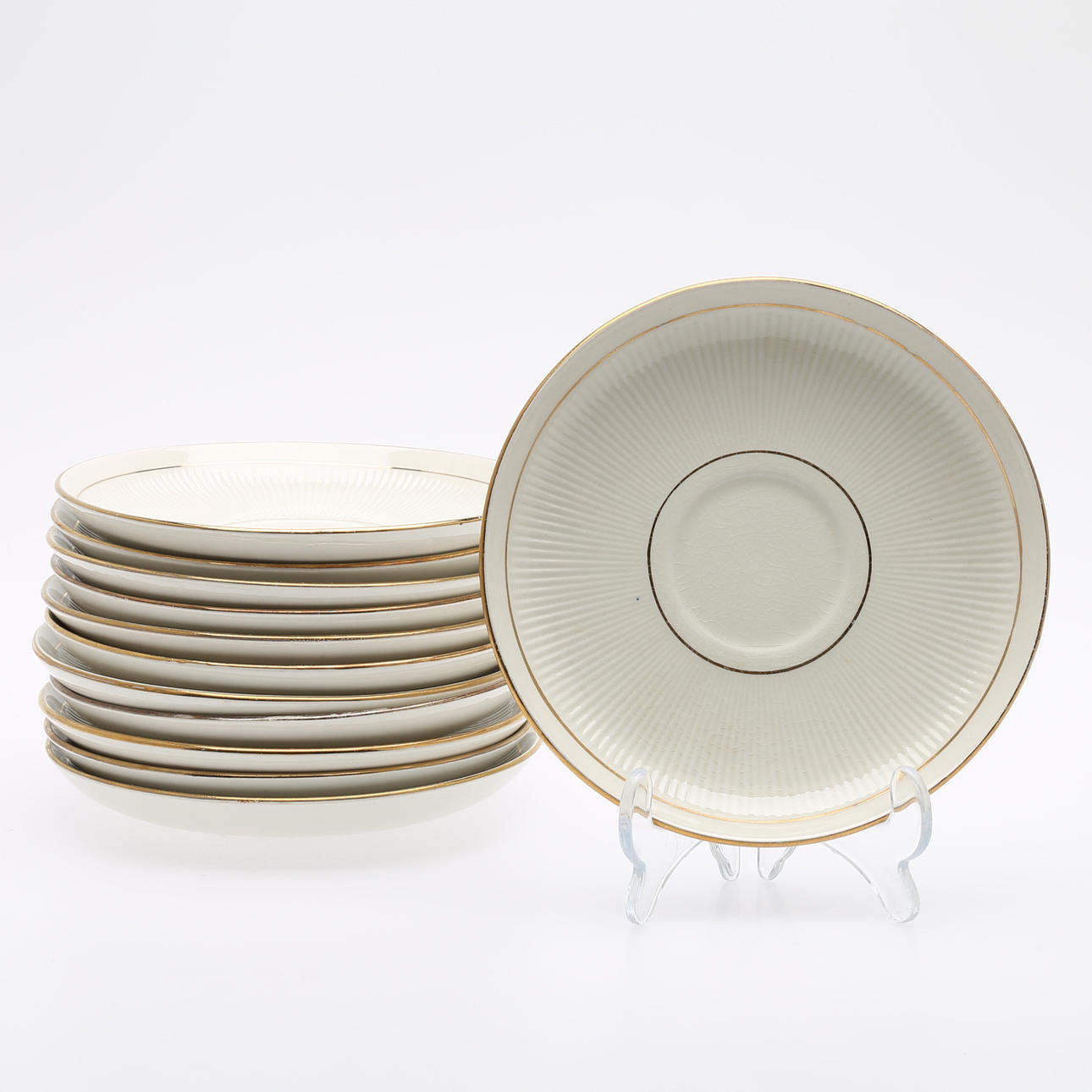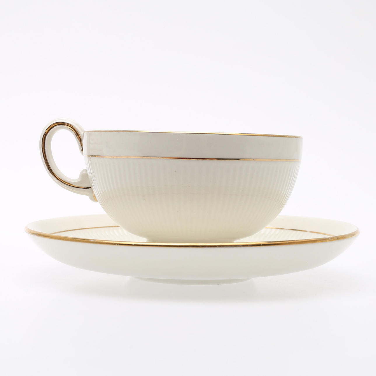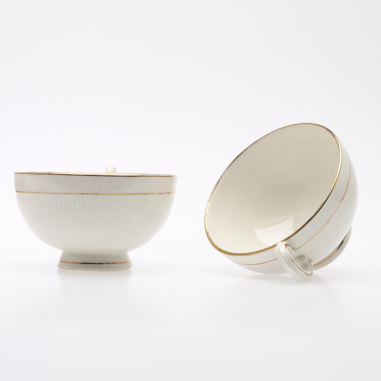 1940/50-tal, tekanna, höjd 14 cm, tekoppar med fat, 12 st, sockerskål, diameter 10 cm, mjölkanna, höjd 9 cm.
