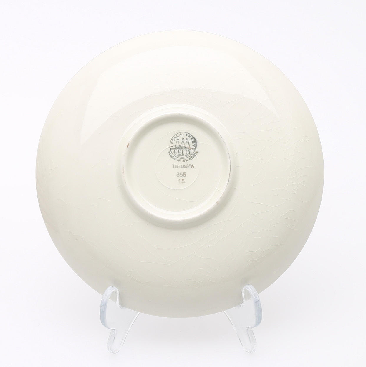 Bruksslitage, en kopp med lagat öra, delar med krackely i glasyren.