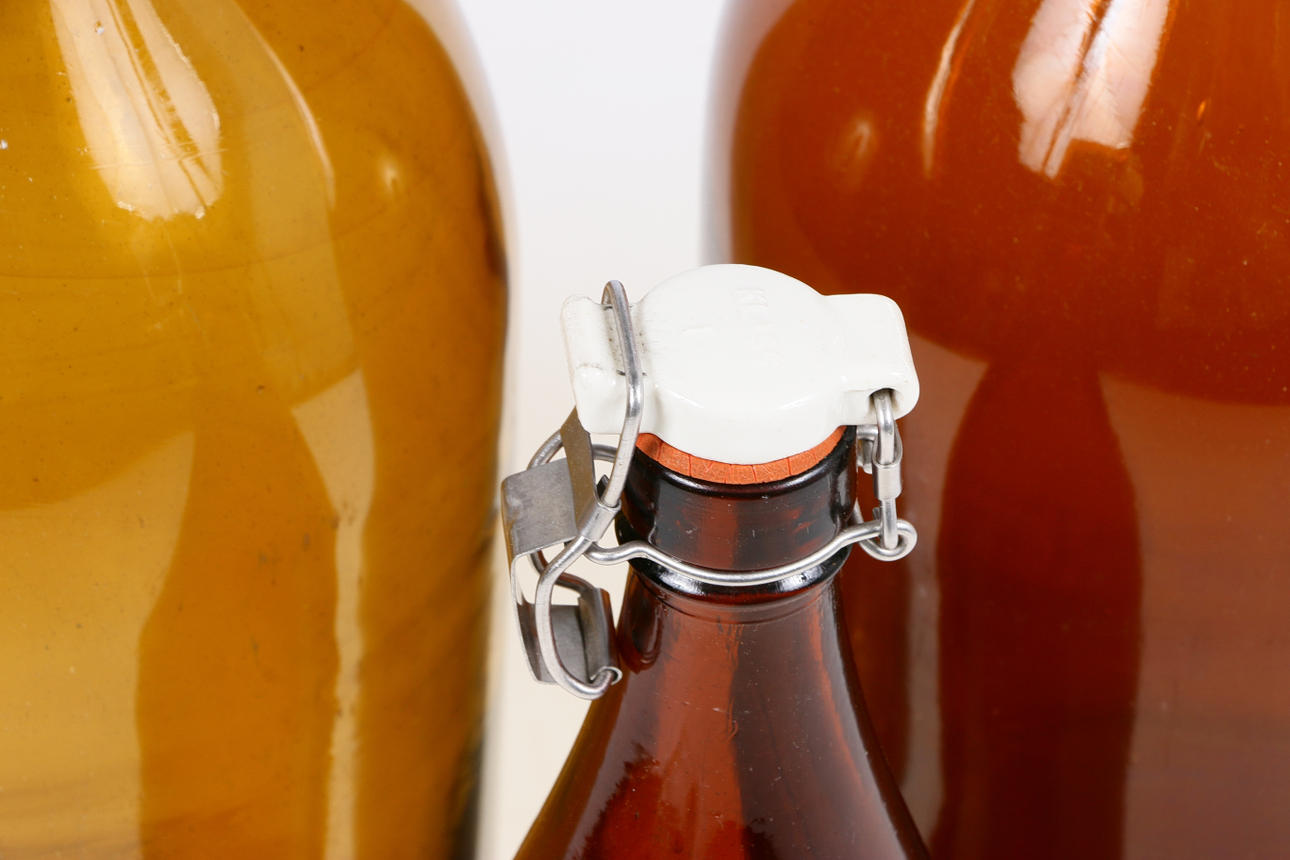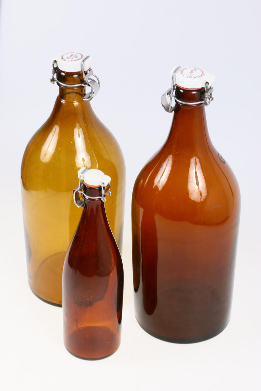 Bryggeriflaskor i brunt glas, med kork