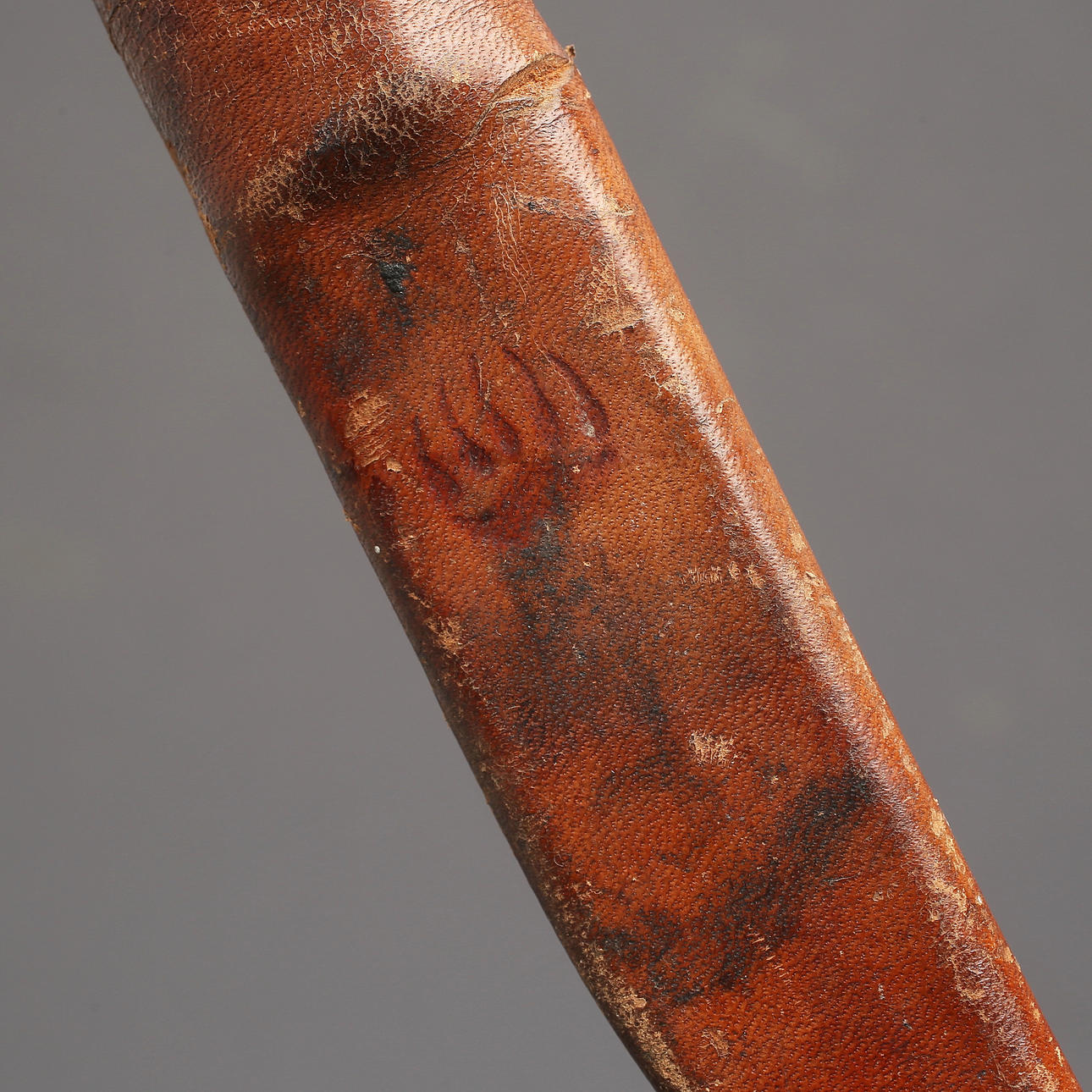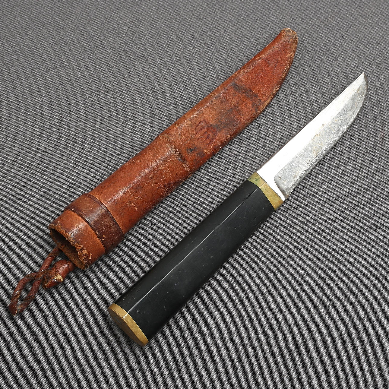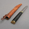 Slitage. Handtag med smärre stötmärken. Blad slipat samt med fåtal jack. Fodral med smärre skador.