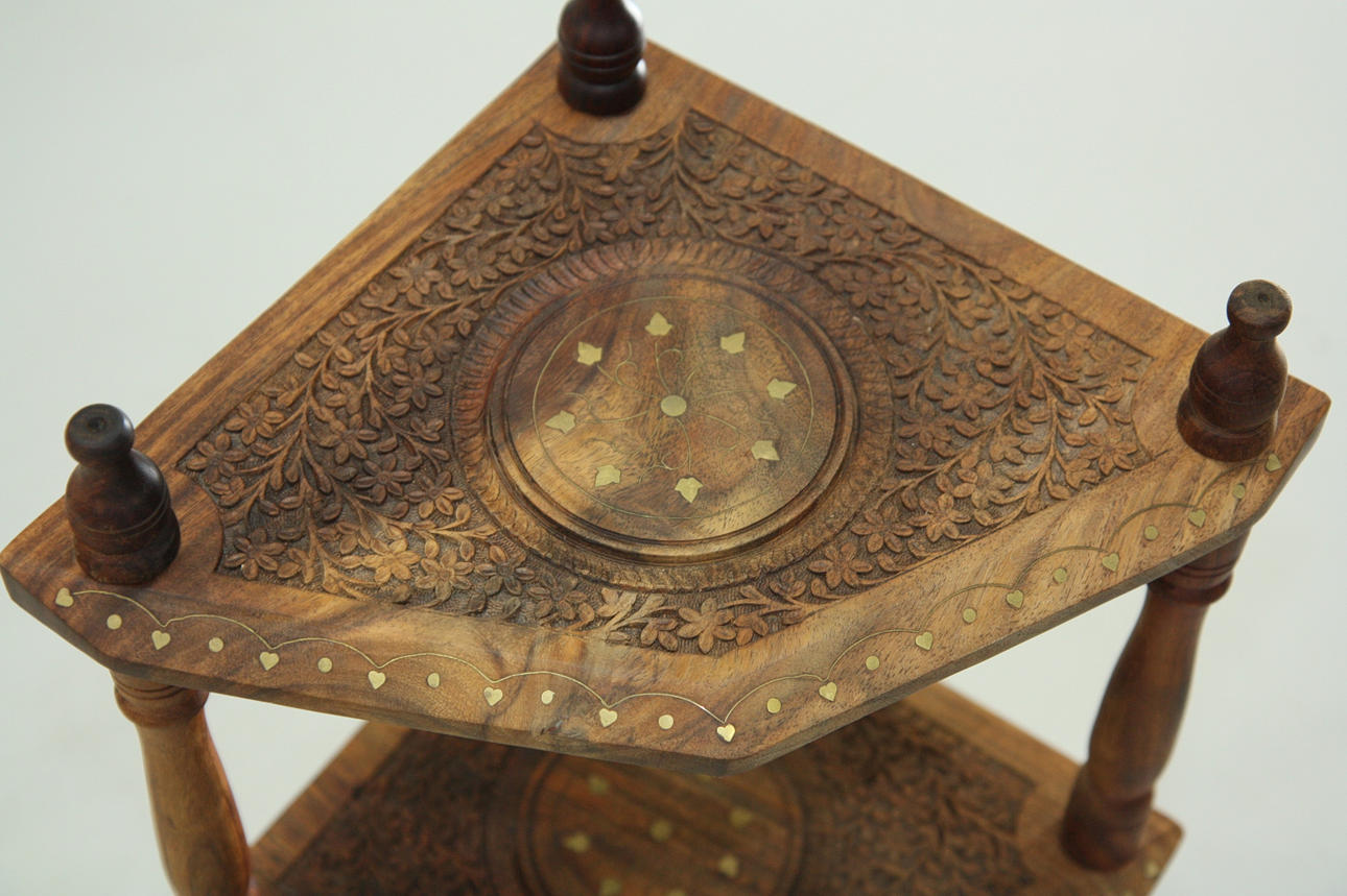Tre hyllplan, skuren dekor.