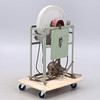 I ställning på hjul. 3 fas. Höjd 106 cm, diameter sten 52 cm.