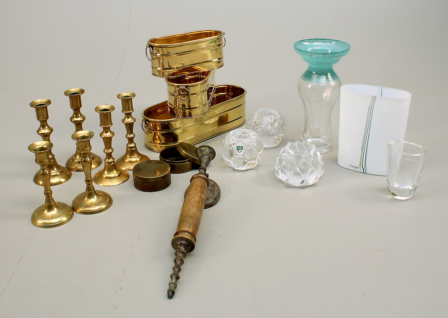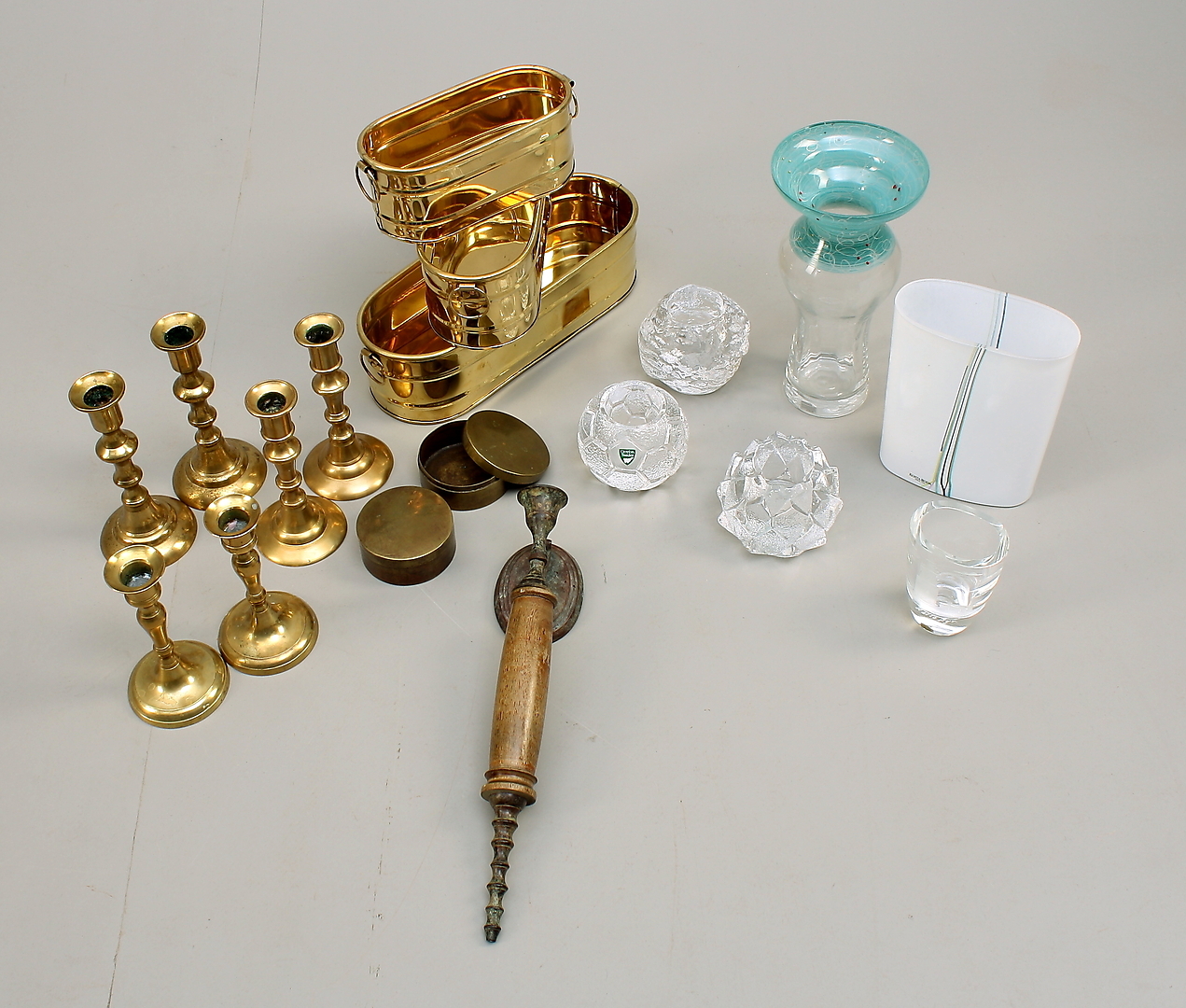 138216. METALLFÖREMÅL, 12 st + GLASFÖREMÅL, 6 st.