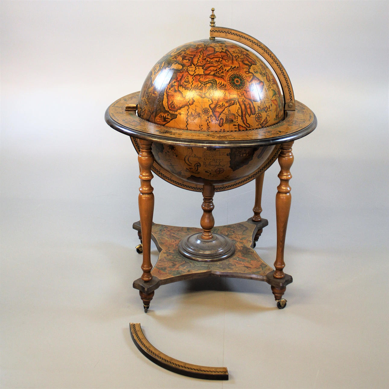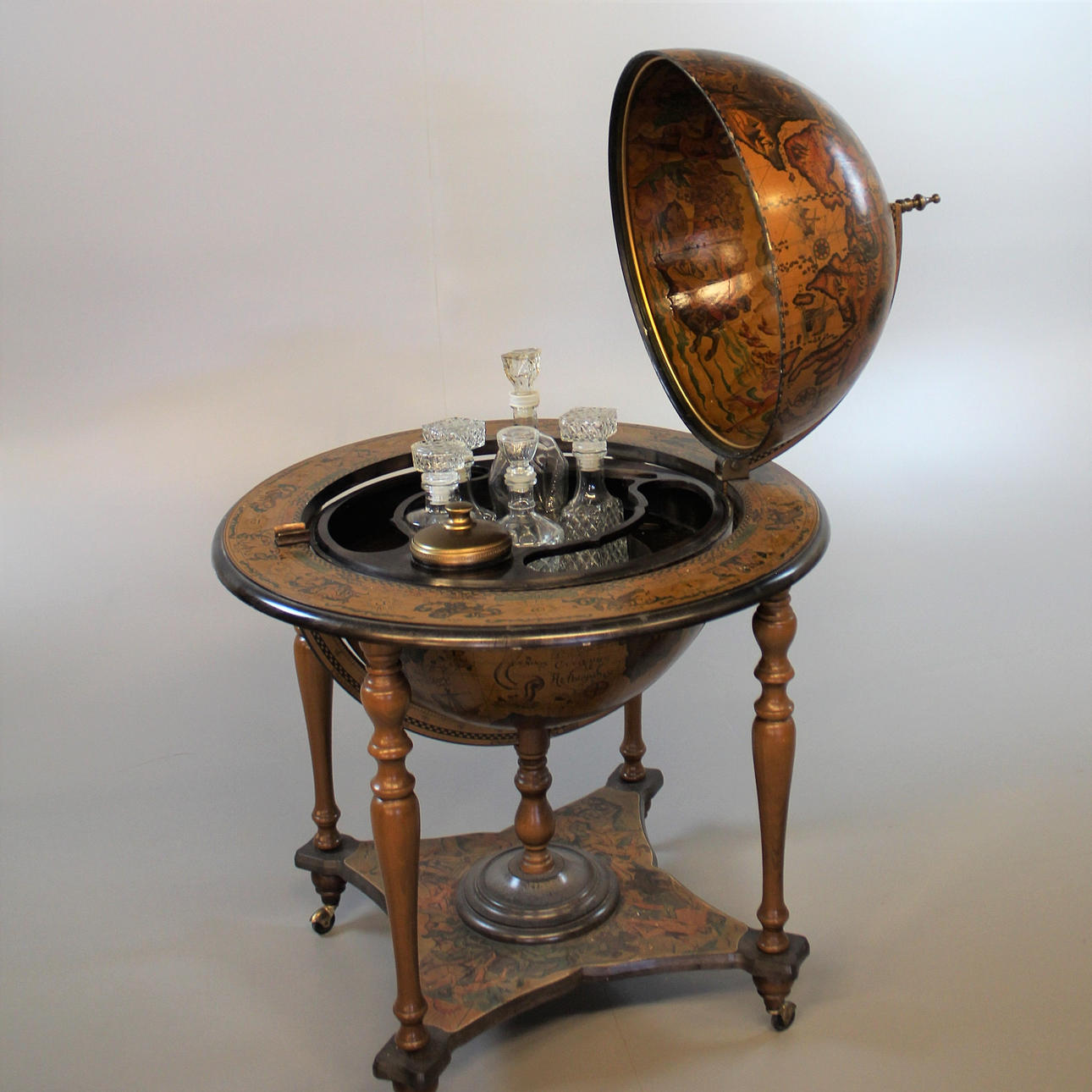 på hjul, karaffer medföljer Höjd 98cm, diameter 72cm.
