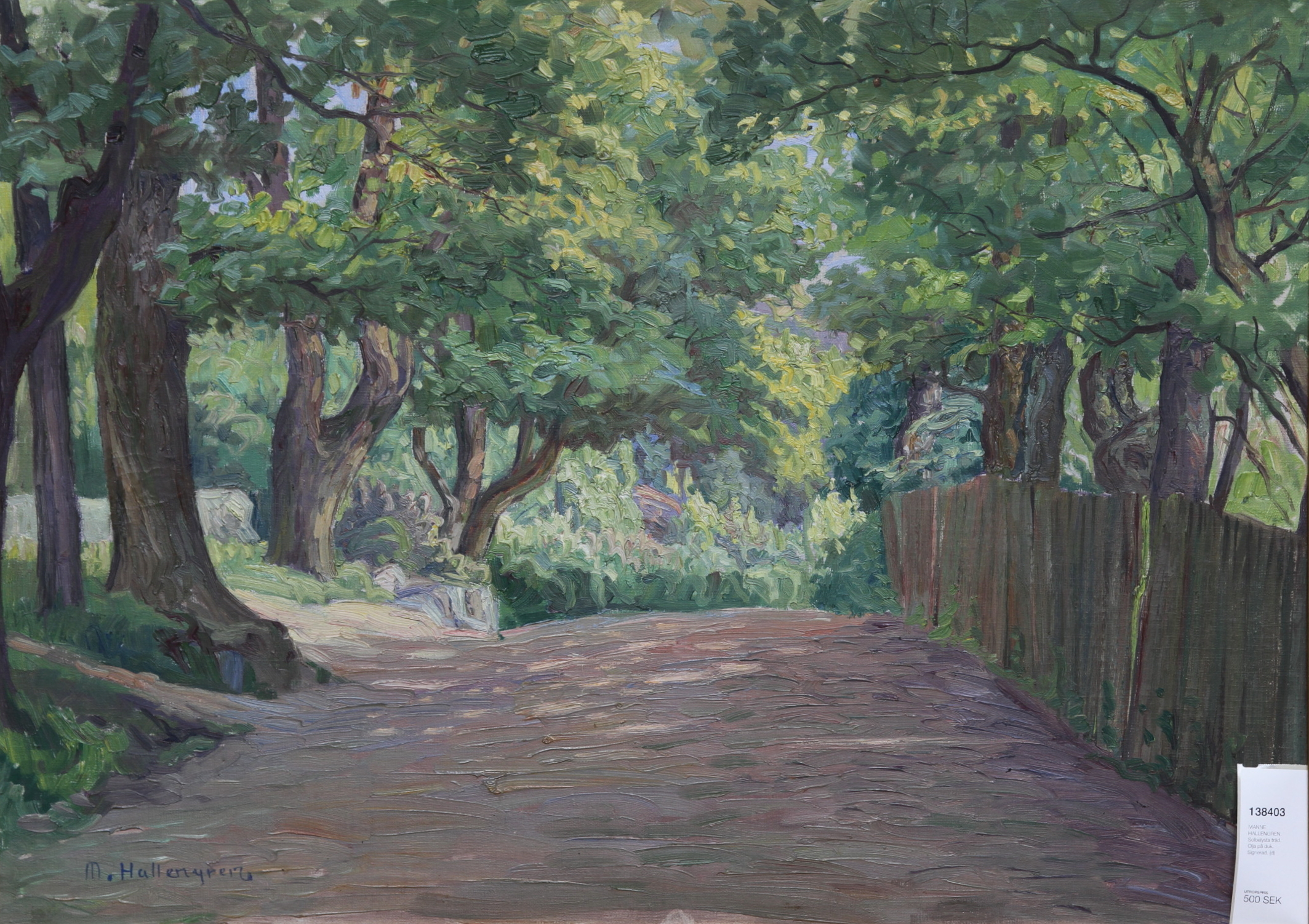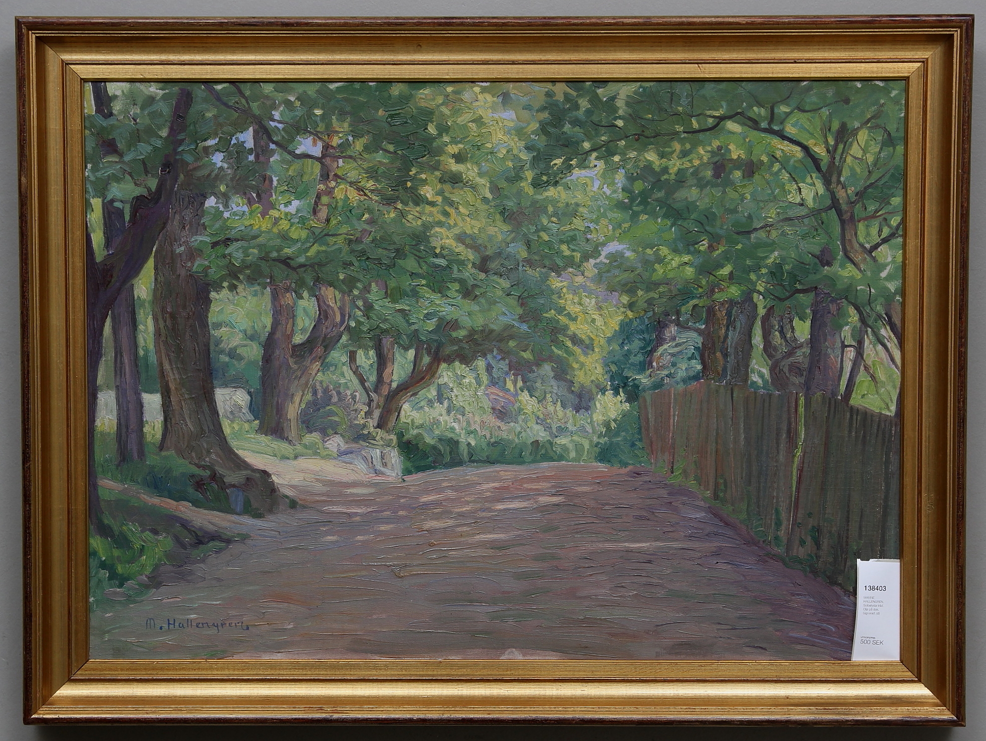 138403. MANNE HALLENGREN. Solbelysta träd. Olja på duk. Signerad.