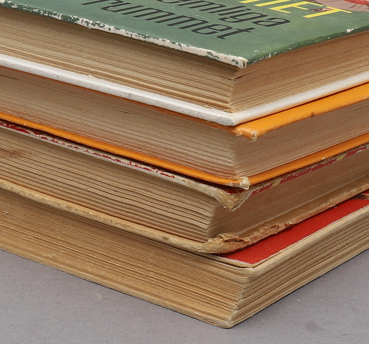 Namnade försättsblad. Slitage,. Gulnade blad. Ej fullständigt genomgångna.