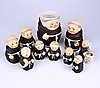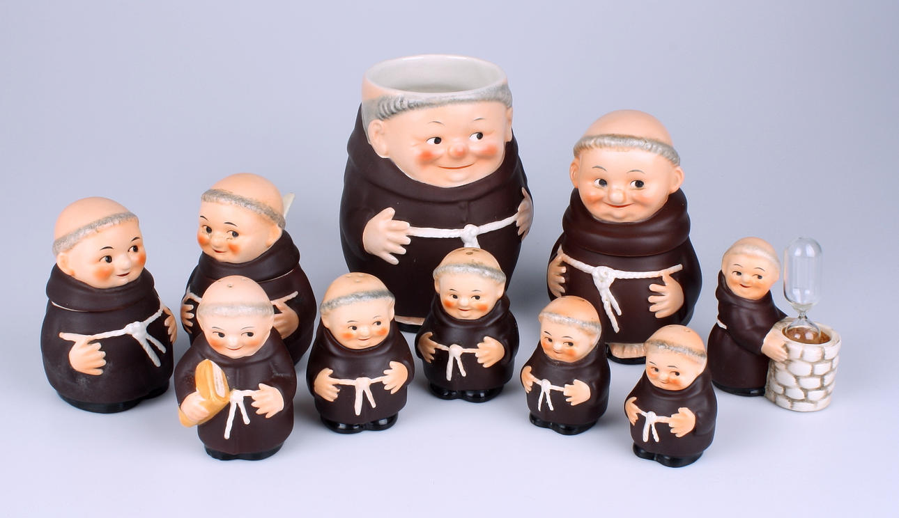 Munkar i keramik, höjd 6-13 cm.