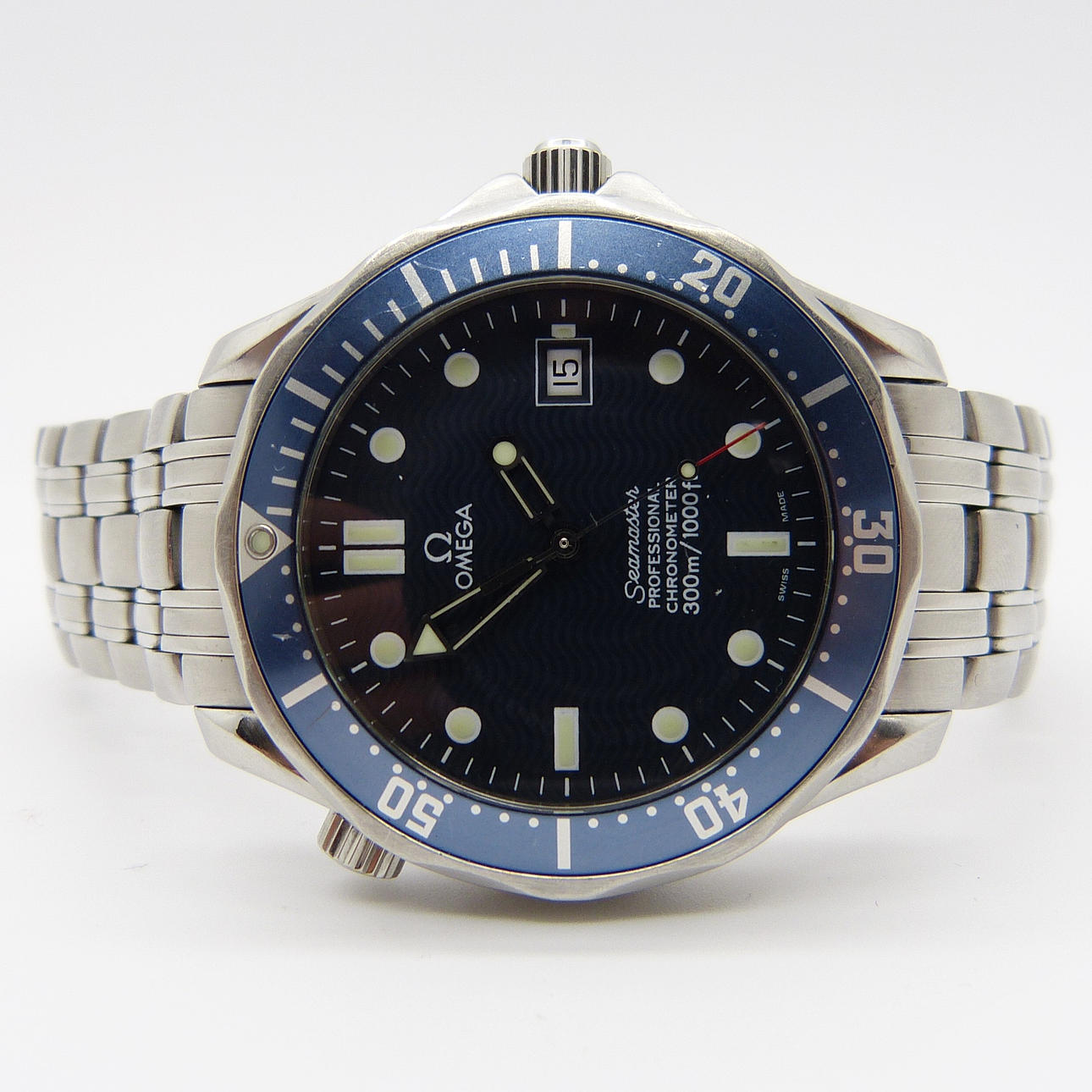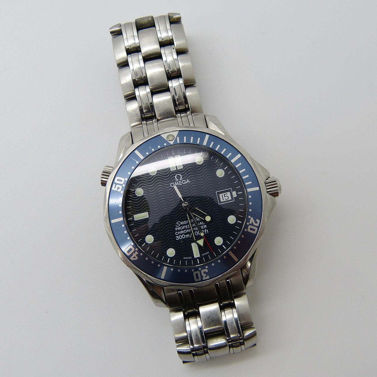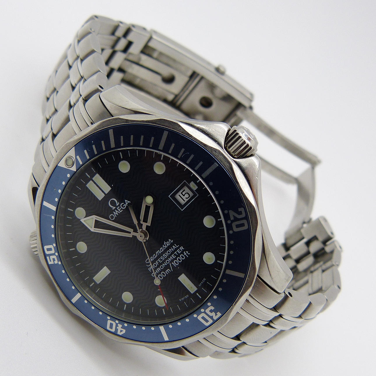 En gentlemans stora Omega Professional Seamaster armbandsur (300m/1,000ft) med rostfritt stålband.