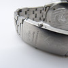 Displayen innehåller ett datumfönster och en svepande begagnad hand. Glaset är tillverkat av safirglas.