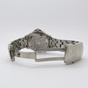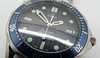 Denna klocka har en 41mm diameter rostfritt stål fallet, med en mörk grafit grå/svart ansikte, dot markörer och en blå ram.