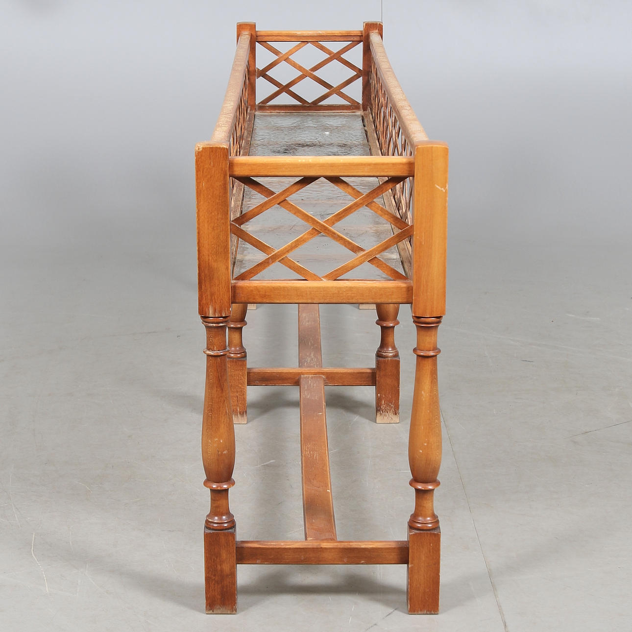 Längd 150, bredd 30, höjd 60 cm.