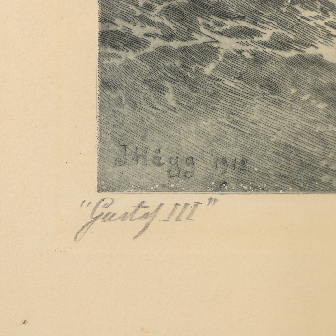 1389235. JACOB HÄGG. "Gustaf III", etsning, signerad J. Hägg.