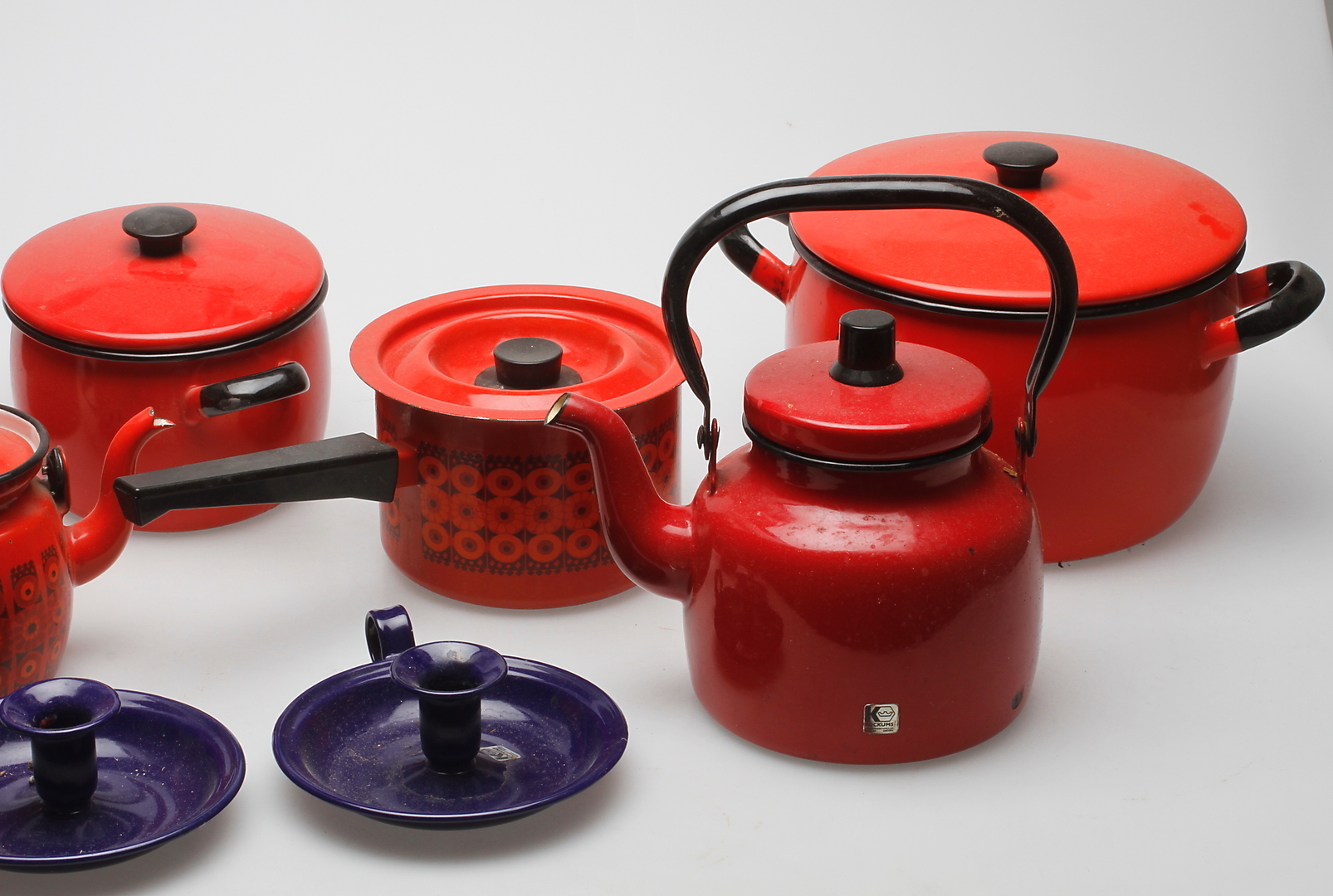 139062. EMALJFÖREMÅL, 8 delar, Kokums samt Finel.