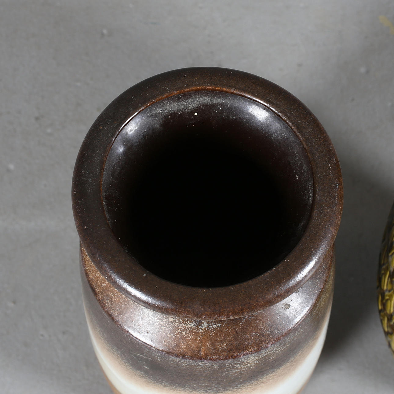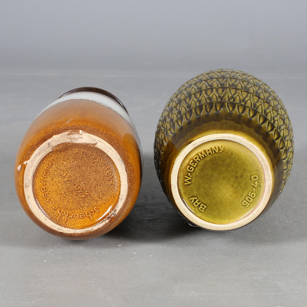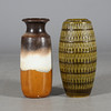 Golvurna grön, Bay W-Germany 906-40, höjd 42 cm. Golvurna gul/beige, Scheurich-keramik 239-41 W-Germany, höjd 42 cm.