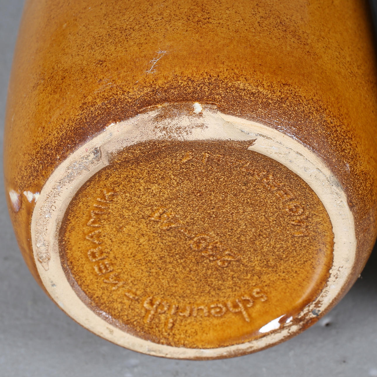 Urna gul/beige med avslag i botten (Skadad). Bruksslitage.
