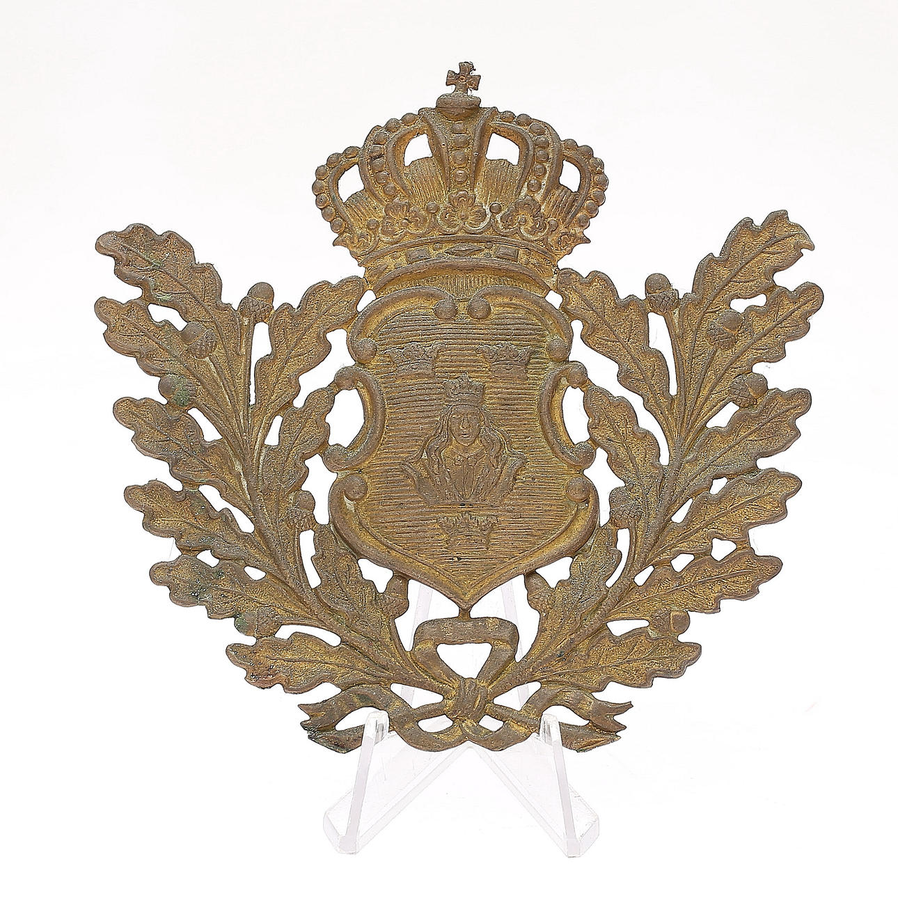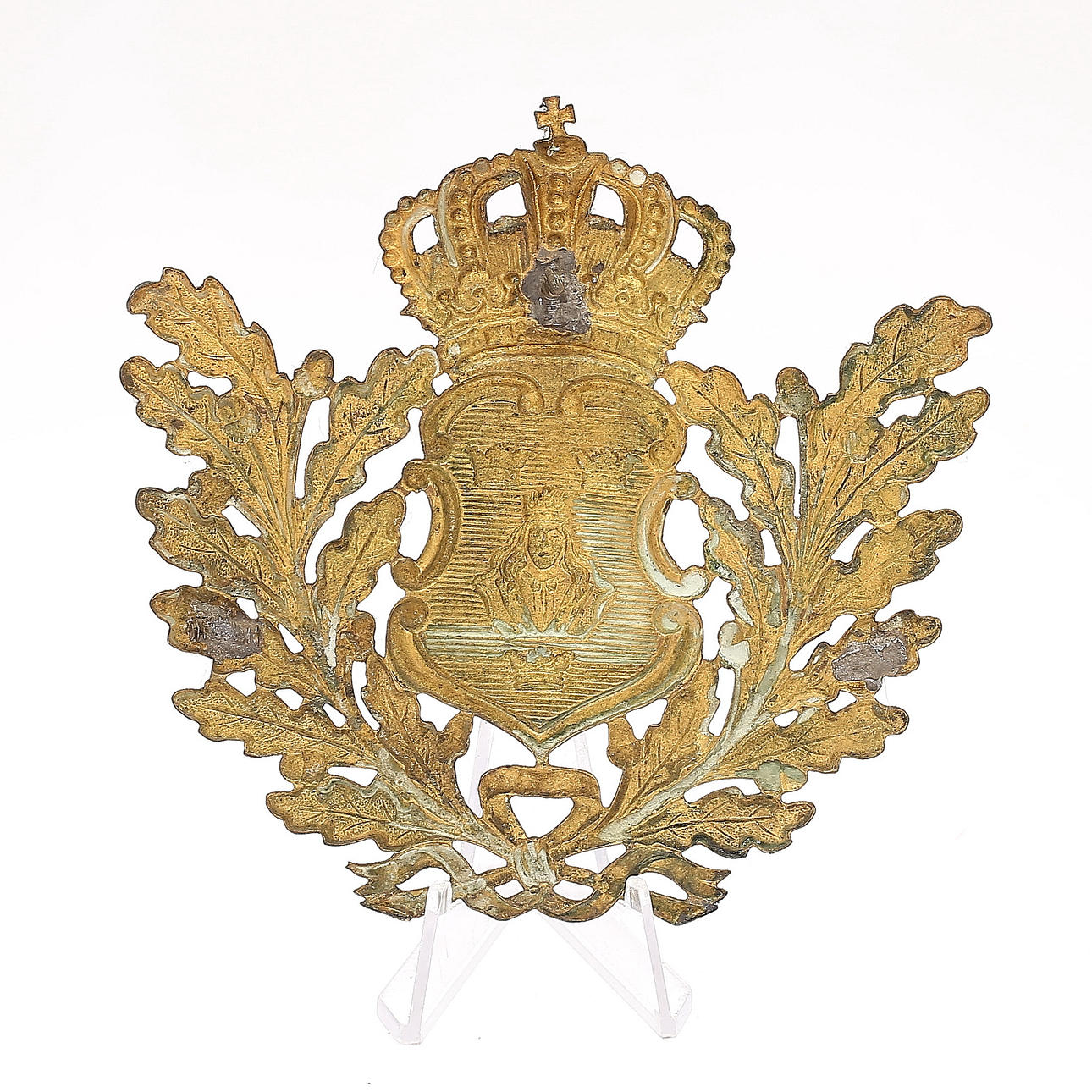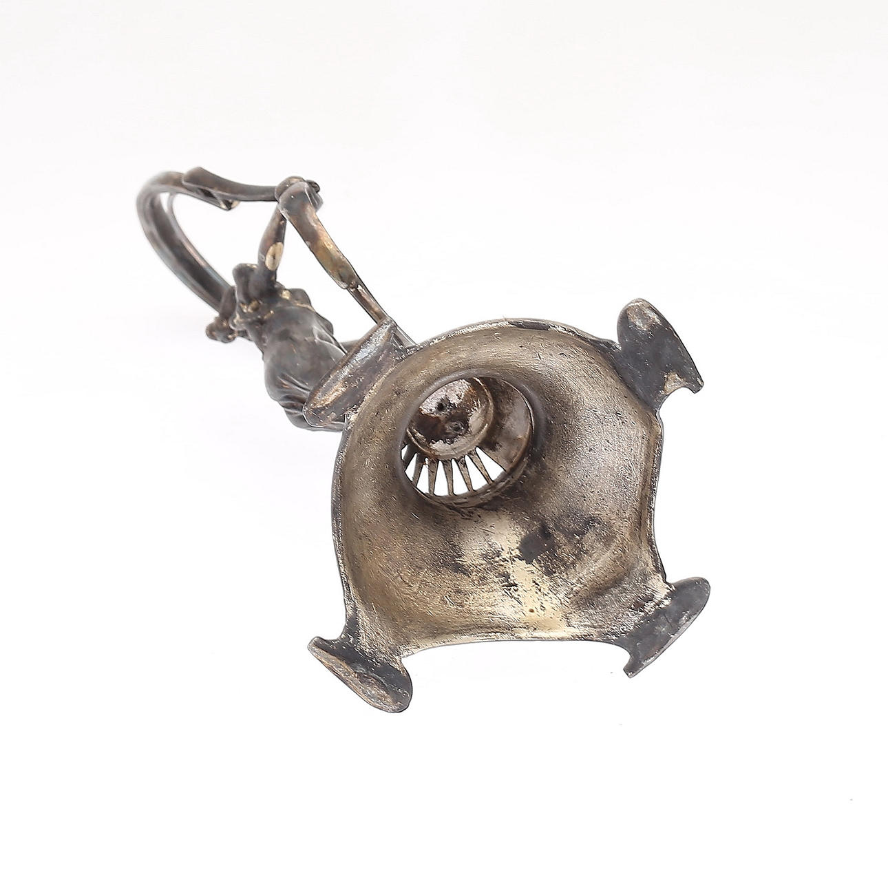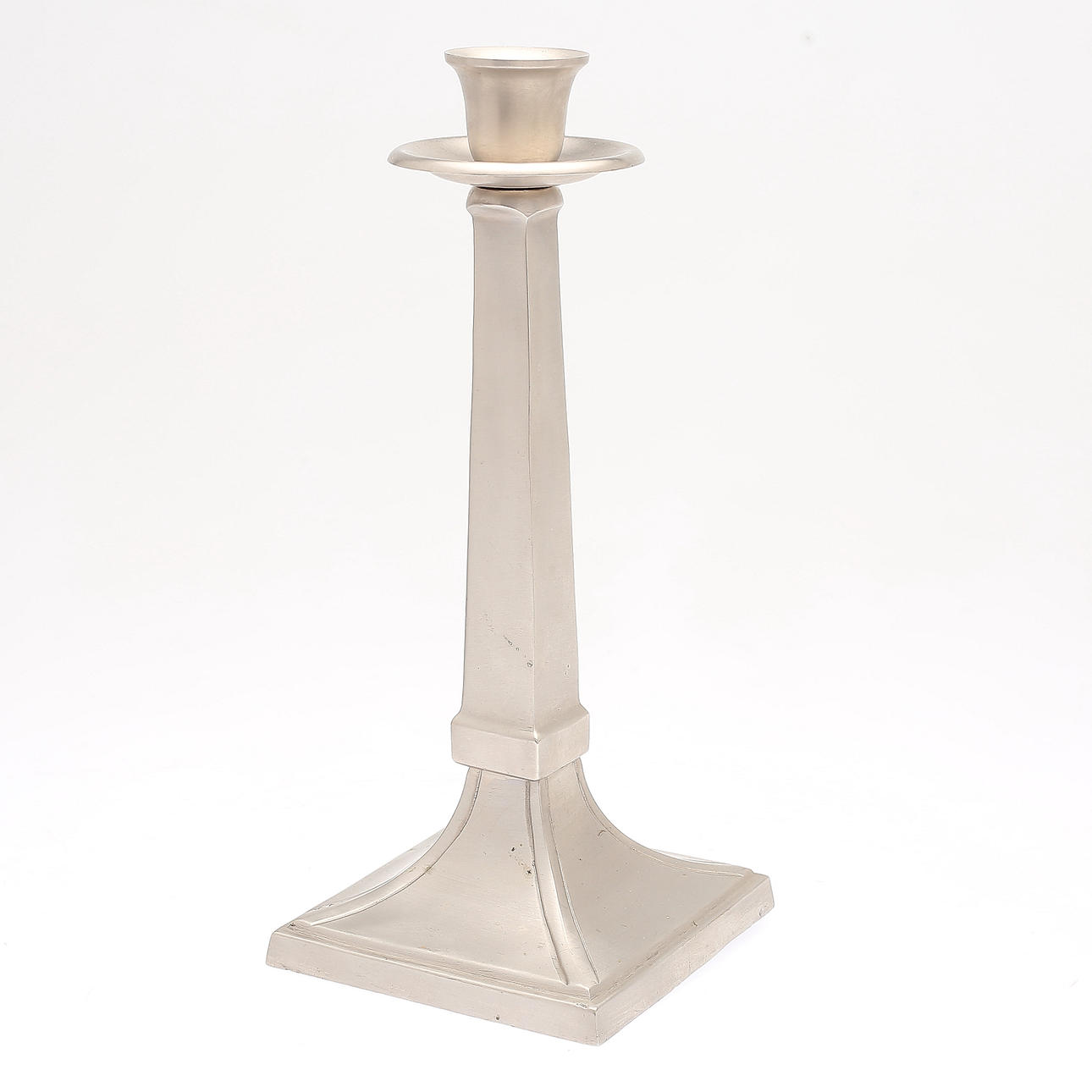 Ställ, troligen för smycke, jugend, höjd 24 cm. Ljusstake, höjd 27 cm. Märke, höjd 11 cm.