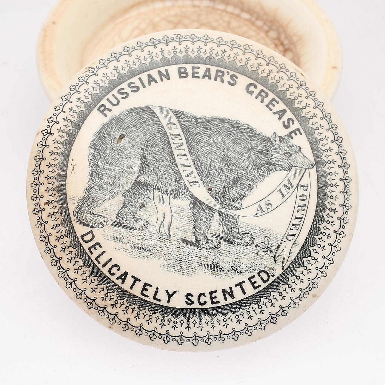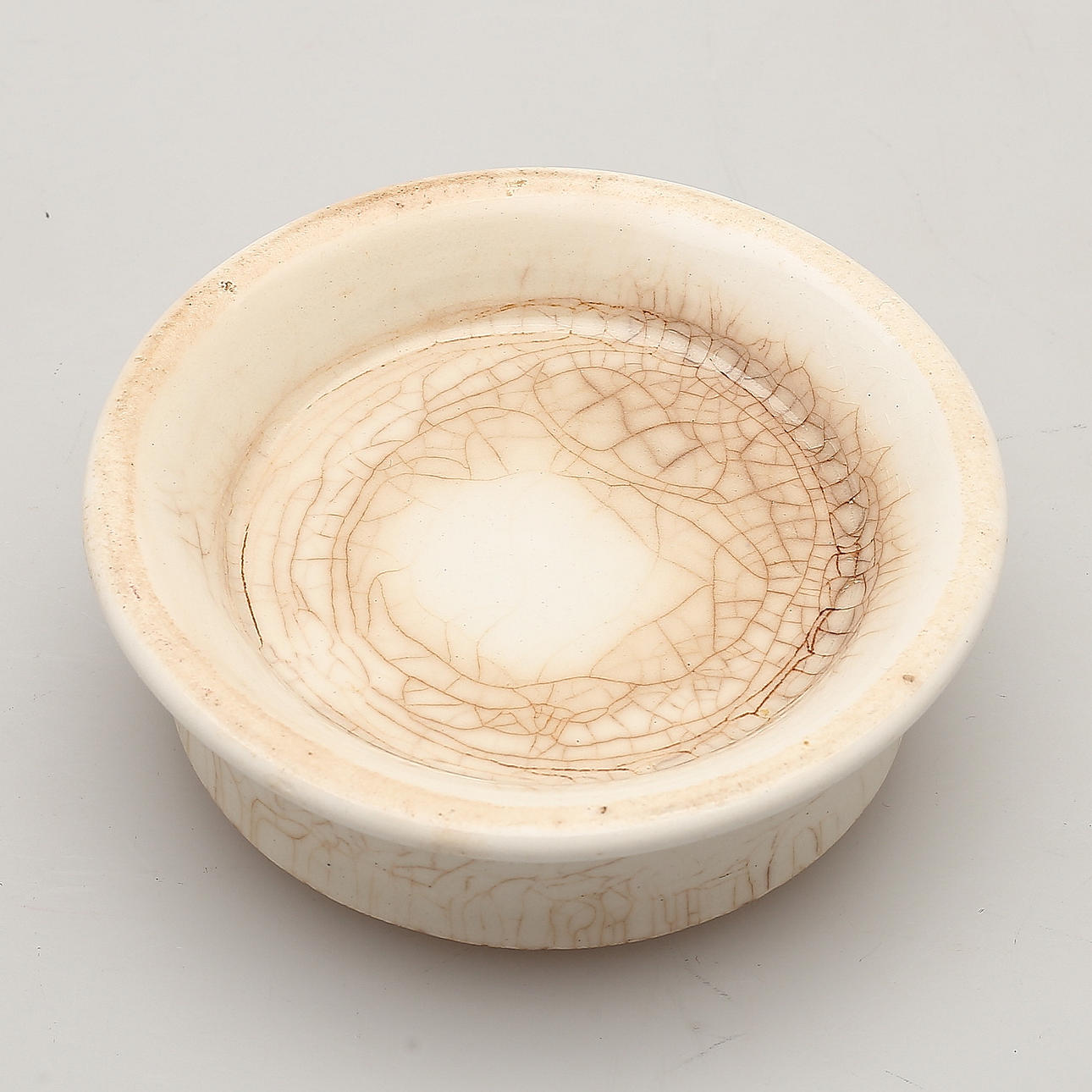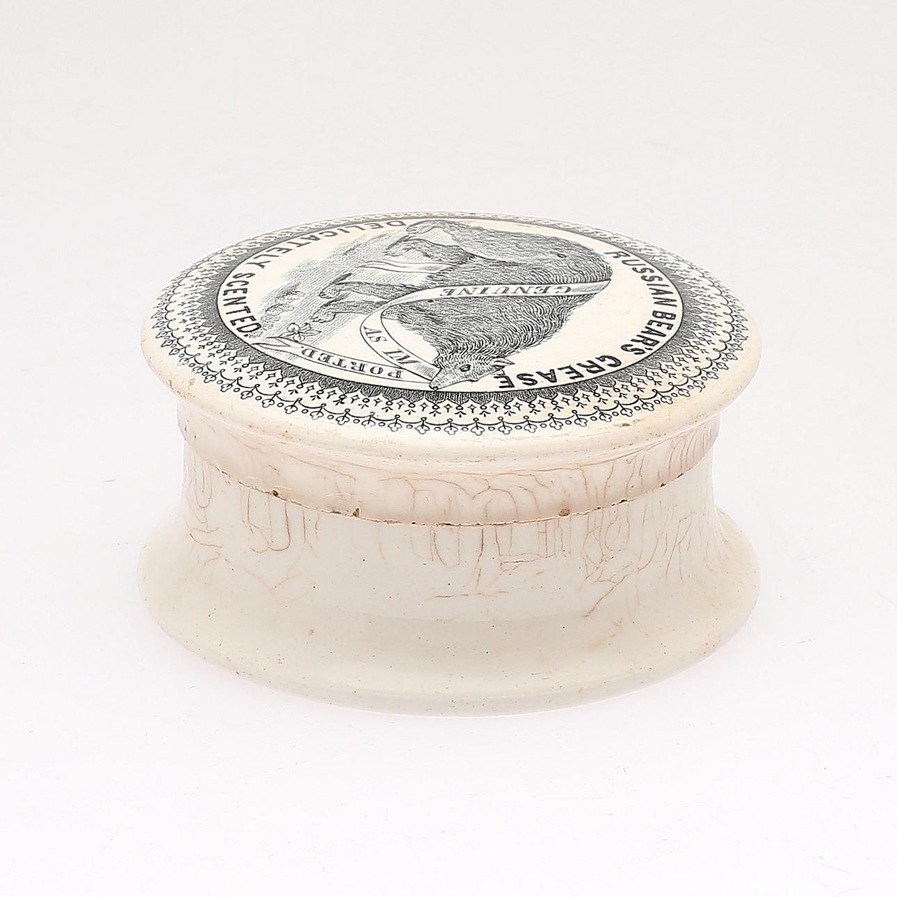 Bruks- och åldersslitage, krackelering samt mindre nagg på lockets insida.